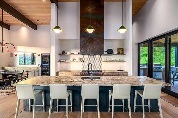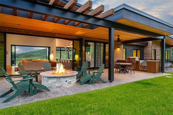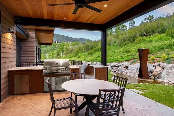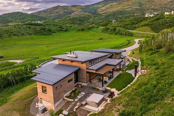 Welcome to this newly constructed home for all seasons in Alpine Mountain Ranch where an active lifestyle and community await. The interior and exterior features incorporate fantastic views, discrete function amidst fluid design and lots of custom features that elevate the "every day" to extraordinary. The great room is a generous space with a soaring Stone fireplace, flanked on both sides with custom 4 panel accordion doors that lead to a covered deck with spectacular views and a covered patio with built-in grill, hot tub and water feature. The kitchen is sleek yet subtle with leathered granite counters and Ash soft-close drawers and cabinets offering SubZero, Wolf, Miele and Cove appliances. The dining room boasts a built-in buffet and Vintec wine cabinet. A private office is adjacent to the primary suite and enjoys floor to ceiling windows, walk-in closet, soaking tub and a roomy shower. An additional bedroom suite plus a bonus project/art studio with walk-out access to the back lies on the opposite side of the home and the laundry room steps out to a dog run. The secret loft above the butler's pantry is a captivating retreat for kids young and old. The lower-level entry opens into a family room with a fireplace and dry bar. 2-bedroom suites occupy this level along with a fabulous bunk room. The 3rd bath is just cool sporting a steam shower which passes through to a large dry sauna. The mud room offers lockers to keep things tidy, some with outlets for boot heaters as well as laundry. The home boasts many smart features plus a 3-car garage with EV charging, radiant floor heat and a/c on the main level, pre-wiring for additional audio/video/wifi features both inside and out, and snowmelt for well-traveled paths. 2 large storage closets are perfectly aligned for an easy install should an elevator be desired. Alpine Mountain Ranch is located just about 5 minutes from the slopes of the Steamboat Ski Area and an array of community activities to enjoy as an owner.