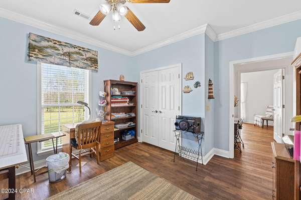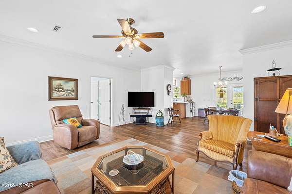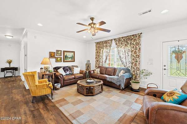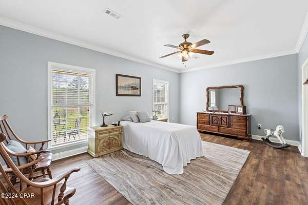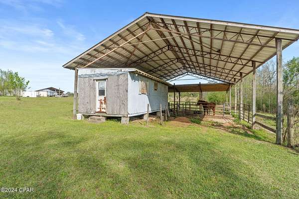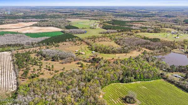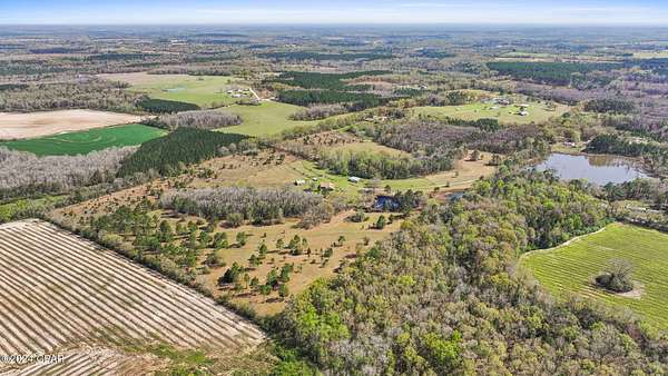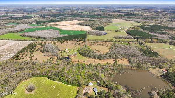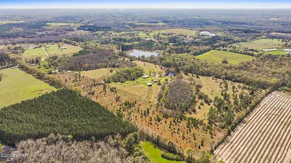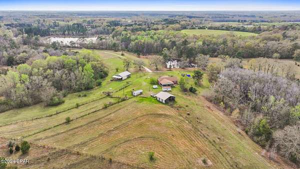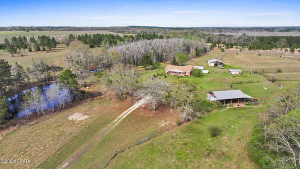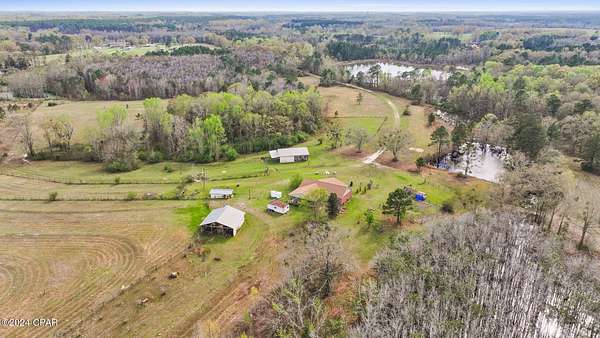 Nestled amidst the serene landscapes of Bonifay, the prestigious property at 3321 Spring Valley Lane presents an exceptional opportunity to embrace a life of privacy and luxury over its expansive 60-acre domain. This exquisite estate boasts 9-foot ceilings adorned with elegant crown molding, creating an atmosphere of sophistication and grandeur throughout. The residence is accessed via a long, private drive, ensuring seclusion and tranquility, further accentuated by two spring-fed ponds that grace the property, offering picturesque views and a peaceful ambiance.Positioned approximately half a mile down a dirt road, the journey to the property sets the stage for the unparalleled privacy it offers. The home's expansive 24x36 covered back porch serves as the perfect outdoor retreat for relaxation and entertaining, overlooking the sprawling fenced and cross-fenced lands that provide a safe haven for wildlife and livestock alike.Agricultural enthusiasts and those with a passion for the outdoors will find the estate's amenities unparalleled, including a substantial 36x56 barn and a 36x36 pole barn, catering to a variety of farming and equestrian needs. Behind the barn lies a natural artesian spring, a rare and valuable feature that adds to the property's charm and utility. The land is also rich with a variety of fruit trees, including plums, apples, and elderberries, as well as hazelnut and grape vines, offering an abundance of fresh produce right at your doorstep.This property is an ideal sanctuary for those seeking a private, peaceful living environment, combined with the convenience of modern amenities and the natural beauty of the surrounding landscape. Whether you're looking for a family home, a weekend getaway, or a working farm, 3321 Spring Valley Lane in Bonifay is a property that promises a lifestyle of comfort, privacy, and close harmony with nature.