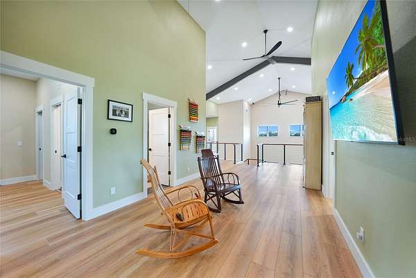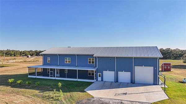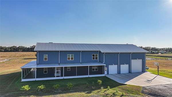 There are homes, there are estates, and then there is this, a commanding 2024-built luxury barndominium that sets a new standard for strength, design, and self-sufficiency. Positioned on 10 fully usable, Ag-zoned acres, this one-of-a-kind property delivers an extraordinary blend of refined luxury and true farm functionality, engineered to perform, built to endure, and finished without compromise. From the moment you arrive, the presence is undeniable. Constructed with a red iron steel structure by ACI Building Systems and CAT-4 rated up to 145 mph, this home is wrapped in impact windows, doors, and garage doors, with the entire shell spray-foam insulated for exceptional efficiency and comfort. Strength and peace of mind are woven into every detail. The two-story interior feels less like a residence and more like a private luxury retreat. Soaring spaces, refined finishes, and intentional design flow throughout nearly 10,000 square feet, while a fully functional fireplace anchors the main living area with warmth and elegance. The kitchen is a true showpiece, designed for both elevated entertaining and everyday indulgence. High-end appliances, generous prep space, and custom finishes define the room, while a huge private butler's pantry provides extensive storage and behind-the-scenes functionality to keep hosting seamless and uncluttered. The primary suite is magazine-worthy in every sense. Designed with balance and indulgence in mind, the bedroom, walk-in closet, and primary bathroom are all equal in size, creating a level of luxury rarely seen. The custom walk-in closet features built-in storage solutions throughout, while the spa-like primary bathroom stuns with an enormous walk-in shower featuring a soaking tub inside the shower itself, transforming daily routines into a true retreat. In total, the home offers four bedrooms, three and a half bathrooms, and multiple flex spaces. A mezzanine provides access to full-height attic storage and discreetly conceals a hidden panic and safety room, adding security without sacrificing design. Outside, the lifestyle expands even further. The wraparound screened porch is a destination of its own, finished with new epoxy floors, a porch swing, and an outdoor shower, perfect for relaxed mornings and quiet evenings. Solar-powered exterior flood lighting is intentionally placed away from the home to minimize bugs, while high-intensity lighting surrounds the property for security and visibility. The garage and utility spaces are truly next level, offering space for multiple vehicles plus a full 48-foot RV, complete with a floor drain and dedicated 50-amp RV service. Two additional 50-amp circuits support electric vehicle charging, while 400-amp electric service and two separate 200-amp FPL feeds ensure uncompromising power capacity. Sustainability and independence are seamlessly built in. A 21kW field-based solar array, engineered for high-wind conditions, feeds a hybrid inverter supported by 42.9 kWh of battery storage. With no electric vehicles, the system averages a net $0 FPL bill, delivering efficiency without sacrificing performance. The home features fully integrated smart technology, advanced security, and whole-property connectivity. A complete list of technology, solar, interior, and exterior features is available upon request. This property is bold, refined and resilient!