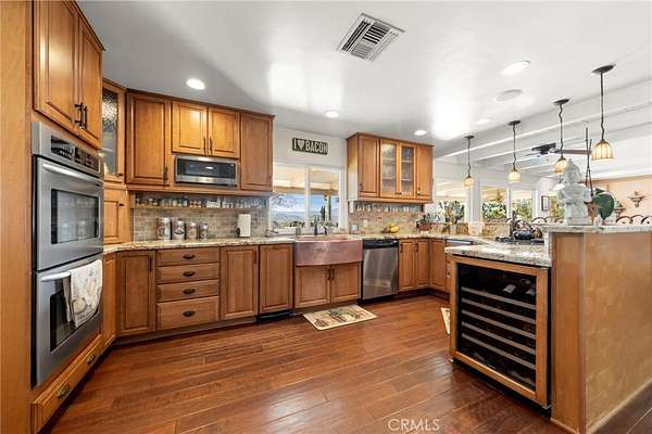Experience the ultimate equestrian lifestyle on this exceptional 3-bedroom, 4-bath ranch estate located in the scenic community of Agua Dulce. Set on 3.7 fully fenced and gated acres, this property combines privacy, functionality, and breathtaking natural beauty. The main home features a large primary suite with a walk-in shower and a Aquatic Serenity Drift Bath, massive walk in closet, two additional bedrooms and three additional bathrooms, including one outside for pool guests with a walk in shower. Entertainers gourmet upgraded kitchen complete with a walk-in pantry, beverage fridge and modern appliances—perfect for family living and entertaining. Don't forget the hand hammered custom copper farm sink. Modern comforts include engineered wood flooring, Custom tile and stone work in primary bath, a lighting control system, network Wi-Fi coverage throughout the main house, garage/studio, and gate, a CCTV security system with six cameras, and a Sonos music system with built-in indoor and outdoor speakers for seamless audio throughout the property. Designed for horse enthusiasts, the ranch includes two (2) Castlebrook barns, each with three stalls, two tack rooms, large turnouts. Also included are a spacious riding arena, and a round pen, ideal for training and daily equestrian care. Ride your horse right off the property to many established trails nearby. Additional highlights include a large detached shop/garage with a 500 sq ft studio apartment above complete with mini split HVAC unit, perfect for guests, rental income, gym, meditation retreat or a private office. The property also features a paved driveway and a 14kW backup generator for uninterrupted operations. For relaxation and entertaining, enjoy the in ground pool and outdoor living spaces, an entertainer’s delight, all framed by stunning panoramic views of the Vasquez Rocks and beyond, creating a serene backdrop for ranch living. This stunning Agua Dulce equestrian ranch offers the perfect combination of horse facilities, luxury amenities, spa-like primary suite, entertainment-ready features, and scenic beauty, a rare opportunity to own a private country retreat designed for comfort, security, and lifestyle enjoyment. Close to all amenities. Zoned A-2. Only 15 minutes to Valencia. Come for a visit. Stay for a lifetime. Welcome Home!