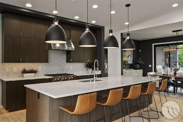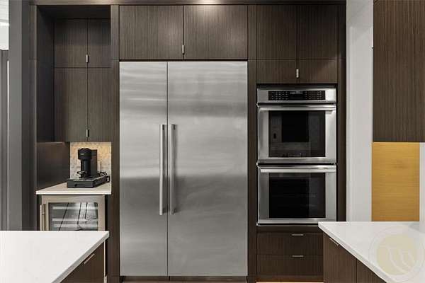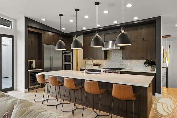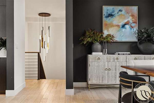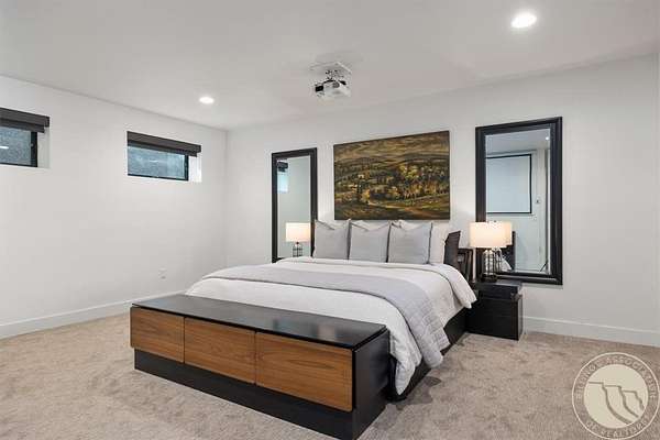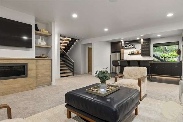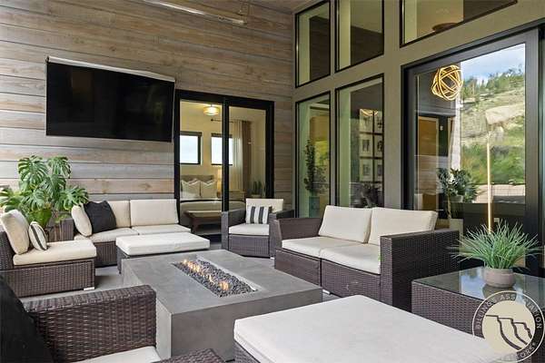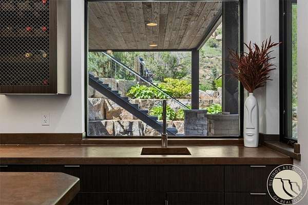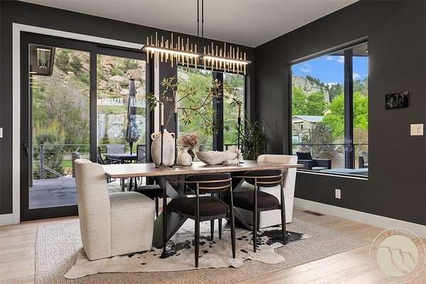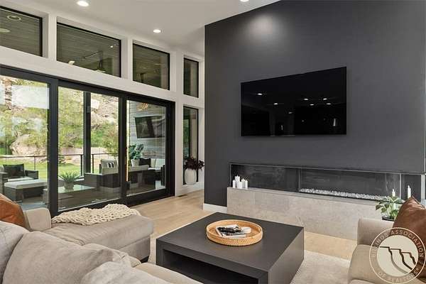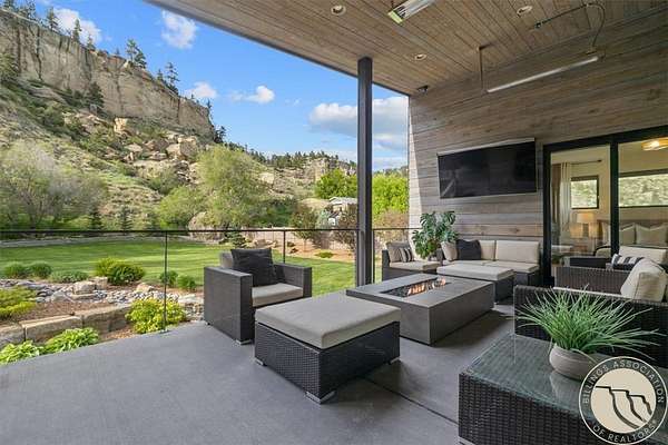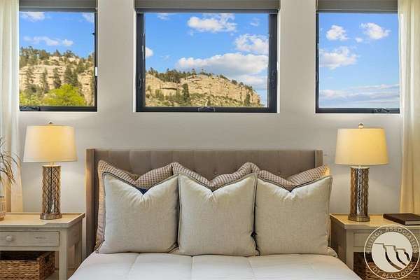 Perched above the city with panoramic views of the Rimrocks, mountains, and city lights, this stunning smart home backs directly to a park like setting with daily deer sightings. Inside, soaring 15ft ceilings and floor to ceiling windows fill the home with light and drama. The open layout features a chef's kitchen with Thermador appliances, quartz counters, a six-seat island, wine cooler, and walk-in pantry. A modern gas fireplace anchors the space, while the upstairs primary suite includes a private terrace and spa-like bath. Step outside to a backyard retreat. A covered deck with infrared heaters and a showstopping oversized water feature with a cascading creek. Control4 automation manages lighting, sound, cameras, garage, and security. Updates include new designer lighting, invisible dog fence, drainage system, and dual fireplaces. Heated four-stall garage with EV charging.
