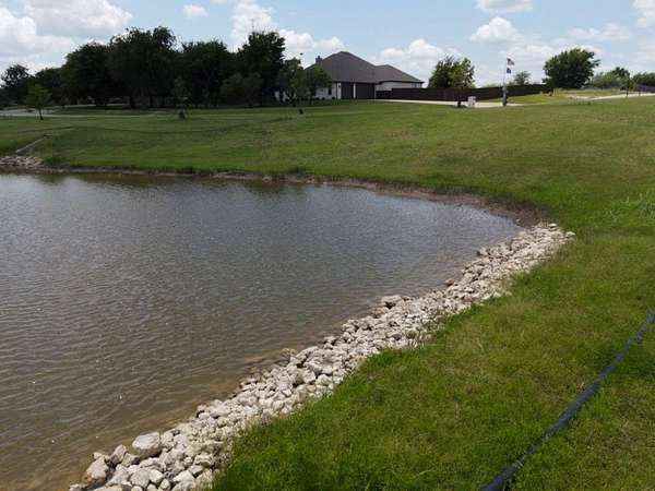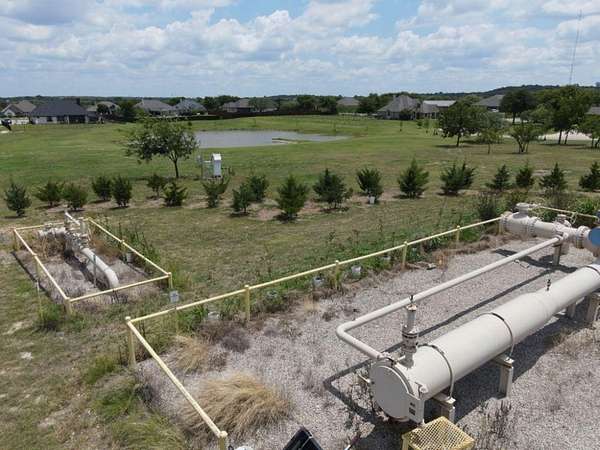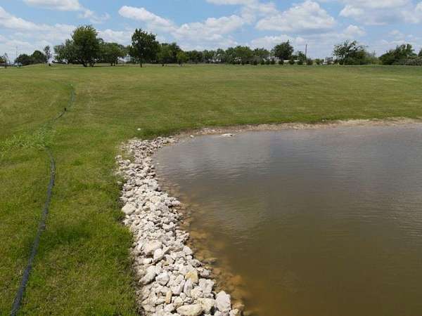 The two lots together features a pond with an electric water pump for temporary irrigation across the property. City water hookup available at the street; temporary power pole installed. Non-functional white control box, previously used for a water well on the property that is not working. There are two gas transmission pipelines in the northwest corner.