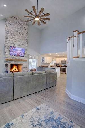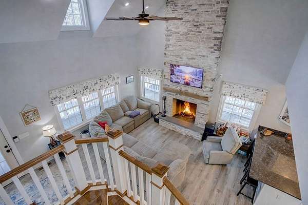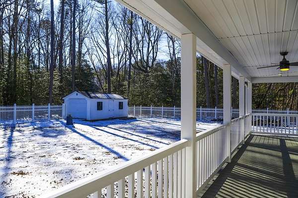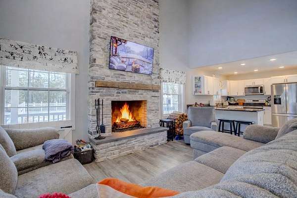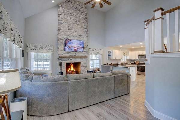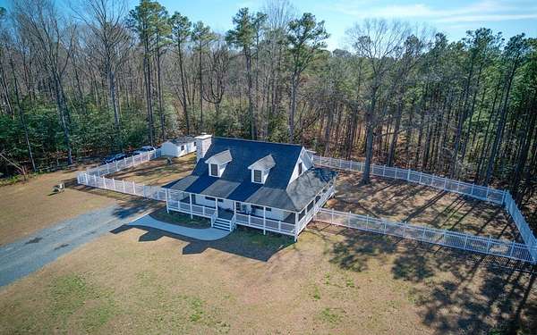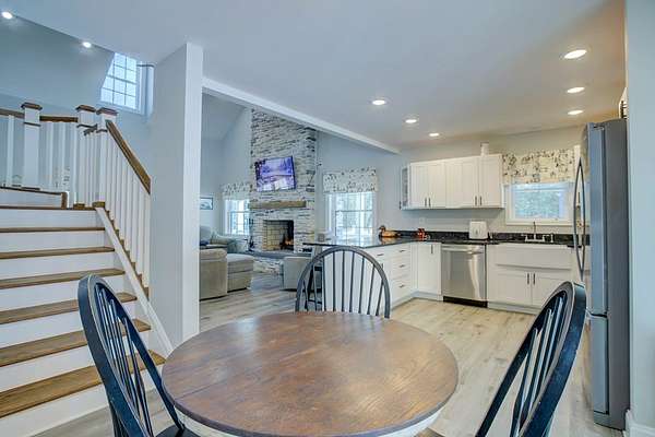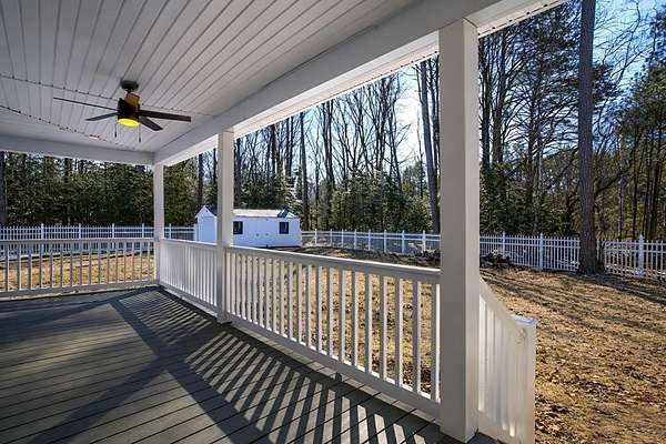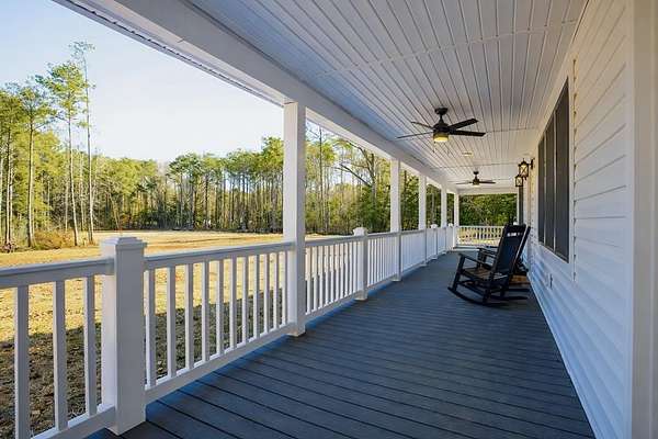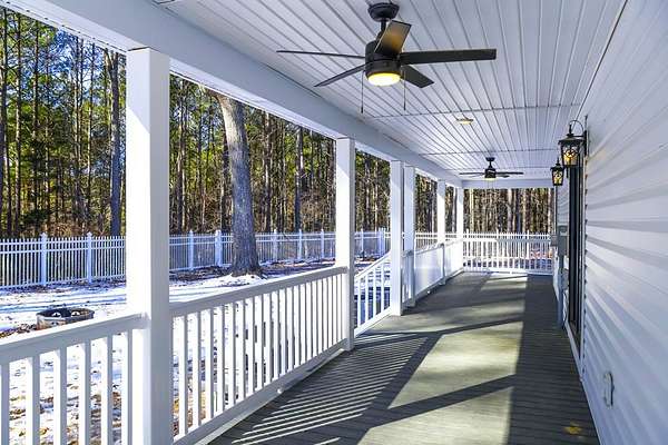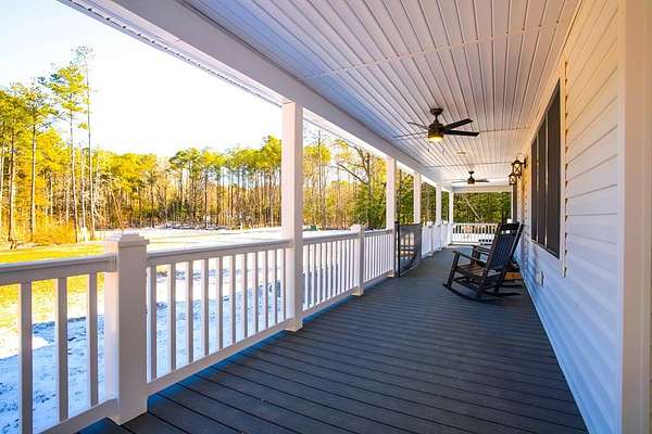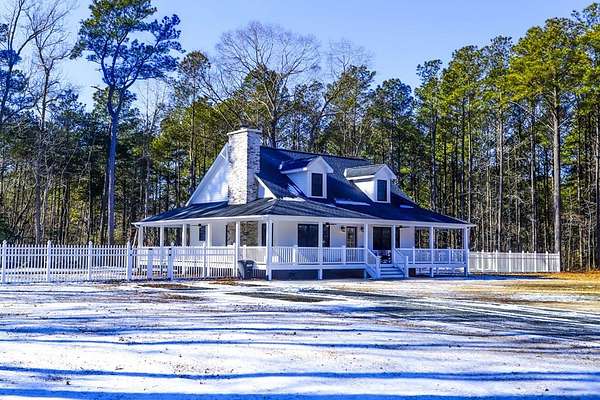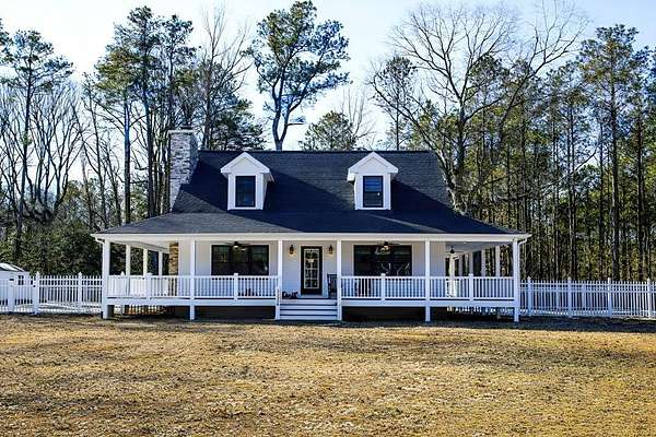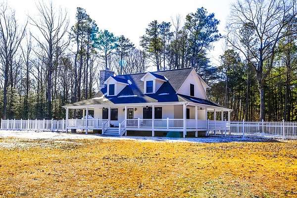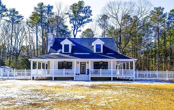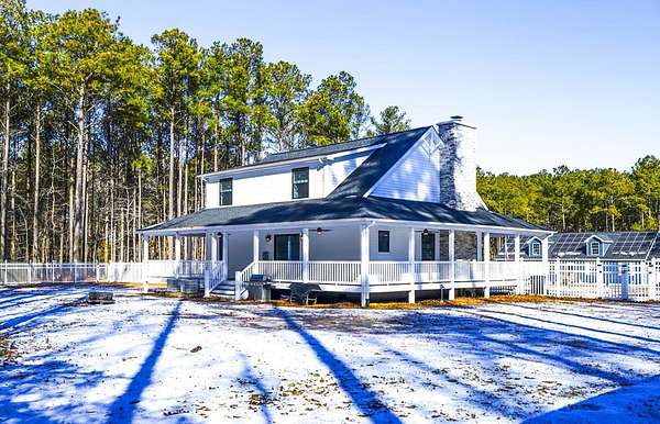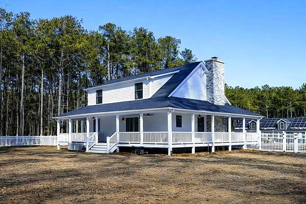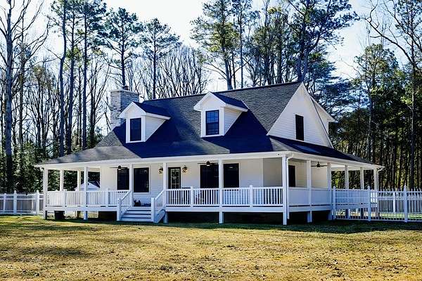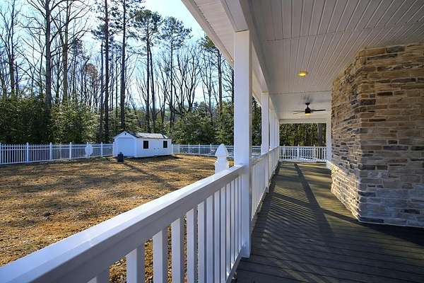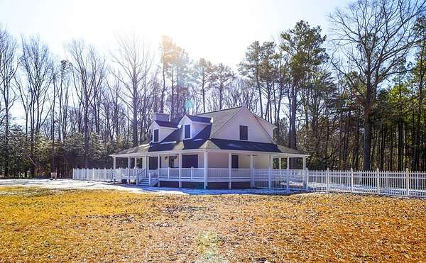 Newly built in 2023, this farmhouse sits on 1.68 acres at the end of Holly Lane, offering privacy and space just minutes from Chincoteague. A full wraparound porch runs around the home,. A spacious fully fenced in yard with beautiful white vinyl material, all so perfect for enjoying the outdoors. Inside features cathedral ceilings, a wood-burning stone fireplace, The mantle is made of wood from the Assateague Lighthouse, Open kitchen, dining, & living area with luxury vinyl flooring throughout. The primary BR & utility room are on the 1st floor. Upstairs includes 2 bedrooms, a full bath, & a loft overlooking the main living space—great for an office or bonus area. One of the closest off-island developments to Chincoteague, giving you room to breathe without being far from town.