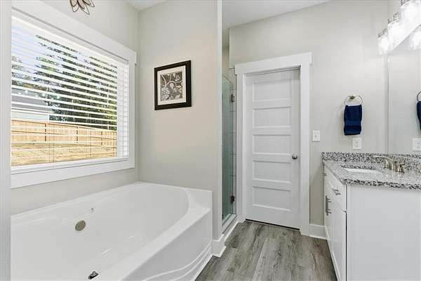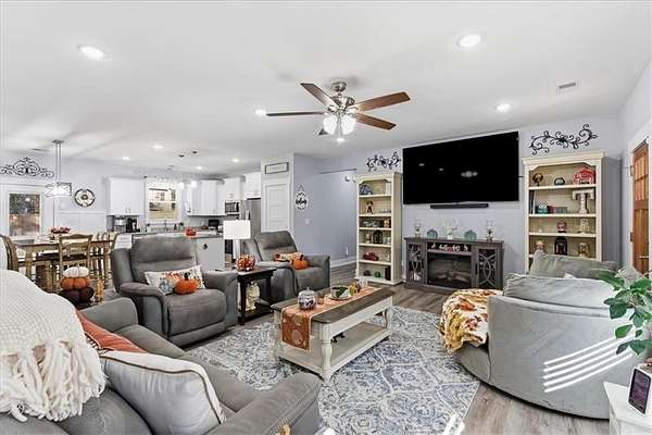 Now offered at a new list price, making this incredible property an even better value! Location, location, location! Tucked away on a private road just off Rockmart Highway, this 2024-built home combines modern style with country privacy on 1.5 acres. The 3-bedroom, 2-bath split-bedroom floor plan offers 9-foot ceilings and LVP flooring throughout the main living areas. The kitchen features granite countertops, a large island, and a pantry, opening seamlessly to the living and dining rooms. The primary suite includes a his-and-her vanity, soaking tub, tiled shower, and walk-in closet. An oversized laundry room provides extra storage, and the large garage offers ample space for tools or hobbies. Step outside to enjoy the extended covered front porch or relax on the covered back patio overlooking the newly fenced backyard--complete with a beautiful wood privacy fence, perfect for pets, play, or entertaining.