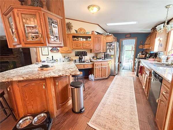 Discover exceptional privacy and comfort on this stunning 9.69-acre property nestled in the scenic Erhard Hills, featuring lake frontage on a peaceful unnamed lake. This spacious home offers 3+ bedrooms, 3 bathrooms, and nearly 4,000 sq ft of well-appointed living space. Crafted for quality and efficiency, the home features a durable ICF foundation, in-floor heat, granite countertops, and a reverse osmosis water system. Enjoy the warmth of two gas fireplaces, along with a heated tuck-under shop, a detached 3-stall garage, and a massive 40'x60' pole shed-perfect for storage, equipment, or recreational space. Surrounded by rolling hills and natural beauty, this lakeside retreat offers a rare combination of comfort, space, and seclusion.