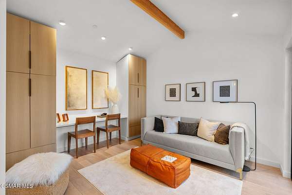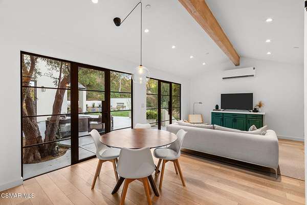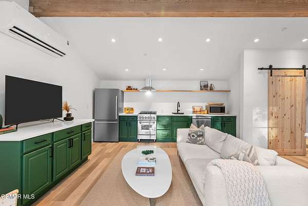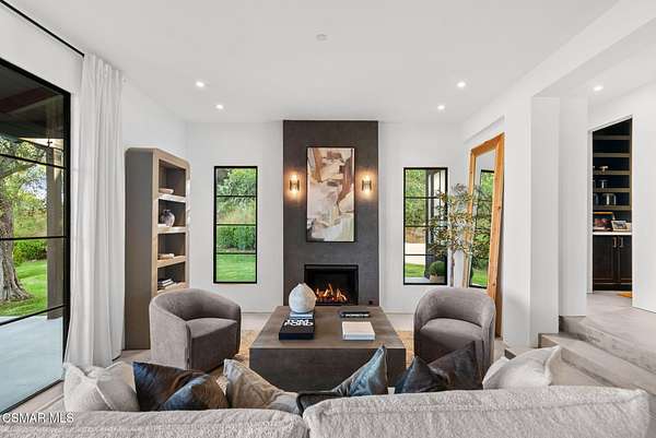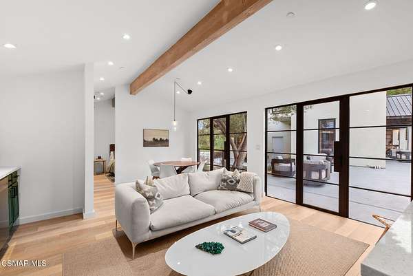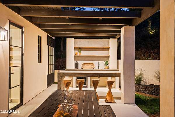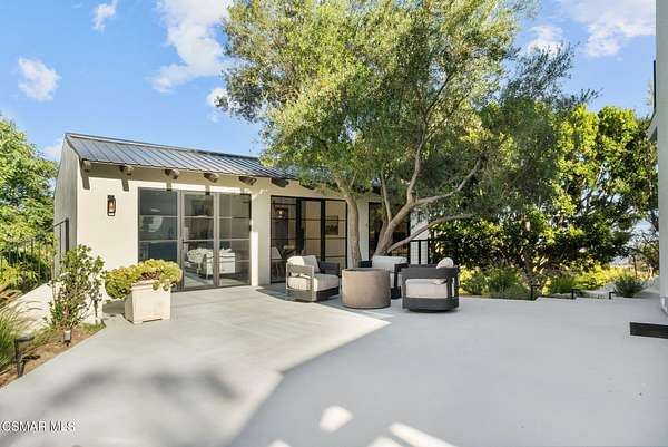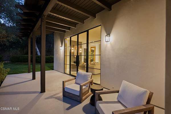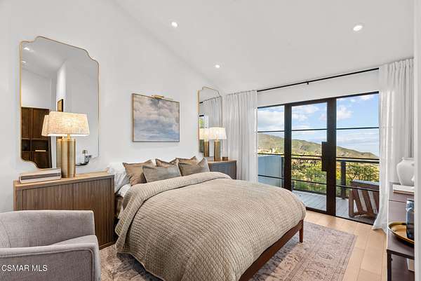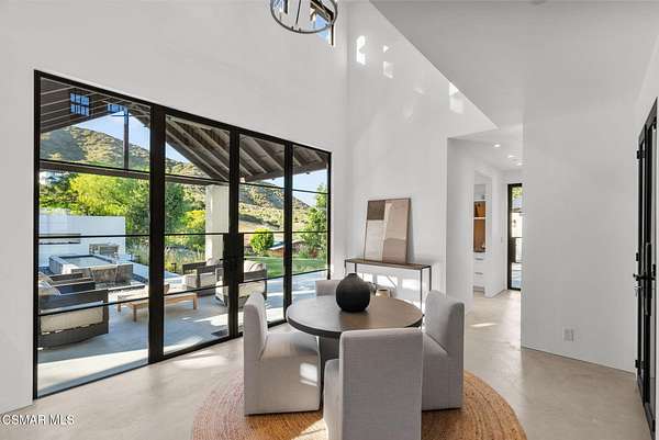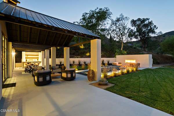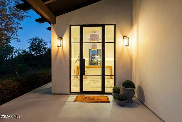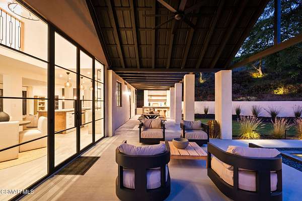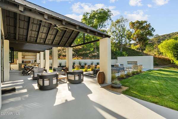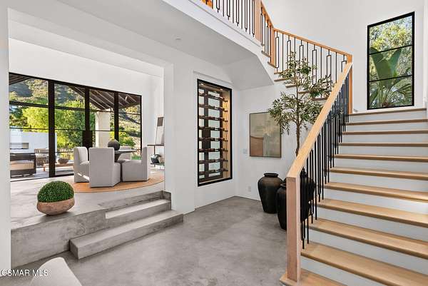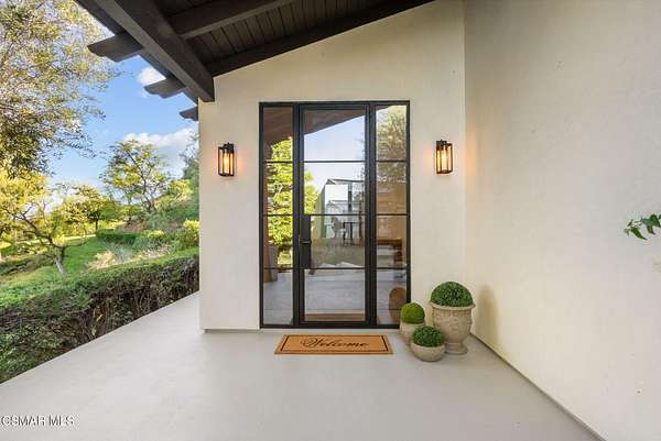 Mulholland Canyon Ranch Perched high above the Malibu coast and canyons, Mulholland Canyon Ranch is a rare and stunning equestrian retreat offering awe-inspiring mountain and ocean views across approximately 3.26 serene acres. This beautifully crafted estate includes 4 bedrooms and 4.5 baths. A thoughtfully designed 3 bedroom, 3.5 bath main residence and a dreamy 1 bedroom, 1 bath guest house, blending modern luxury with rustic charm. Step inside to find soaring ceilings, concrete floors, concrete counters, striking steel framed doors and windows that bathe the home in natural light. Enjoy breathtaking views and fresh breezes through expansive glass openings that blur the line between indoors and out. The luxurious primary suite features dual showers, a spa-like soaking tub, and a private balcony that sits high above the lush, manicured grounds - framing a gorgeous view of the ocean. Each bedroom offers a private en-suite bath and access to a shared balcony. The family room features built in closets, a dedicated desk area and its own private balcony with gorgeous views. Outdoors, indulge in a resort-style setting with covered seating, a sleek wet bar, outdoor shower and a tranquil reflection pond accented by a cascading waterfall. The lush, mature landscaping showcases stately olive trees and a vibrant tapestry of foliage, creating a serene and private retreat. Designed for the ultimate Malibu lifestyle, the property features versatile equestrian facilities including a lighted eight-stall barn with a tack room, multiple turnouts, two large corrals and a riding arena. A large covered and fenced structure offers flexible use as a stylish chicken coop, dog kennel, or creative outdoor space. With its celebrity pedigree and a park-like setting that is peaceful and private, this fully fenced and double gated property is the ultimate blend of nature, luxury and lifestyle, offering a rare opportunity to own a true Malibu retreat.