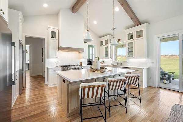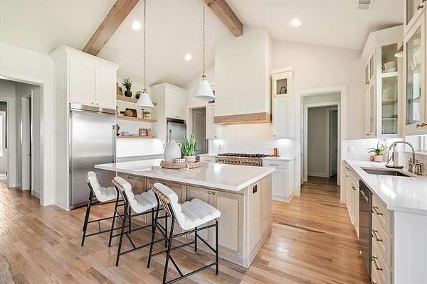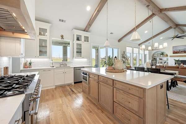 Open House Saturday April 11th form 1-3pmOne of the largest lots in The Highlands of Northlake, positioned at the Top on 1.6 acres, this modern farmhouse delivers fewer neighbors, more privacy, and some of the best elevated sunset views in the area with true topography and space to create your dream backyard without limitations. Built in 2022 by a meticulous custom builder, every inch of this home was designed with intention and craftsmanship; no shortcuts, no compromises. Over 4,500 square feet with four bedrooms, four full baths, and three versatile bonus rooms ready to become whatever your life demands: media room, studio, playroom, or office. Three bedrooms feature private ensuite baths, while the fourth bedroom sits near a full bath off the media room, creating flexibility for guests or multi-use living. One secondary suite can function as a second primary with space for its own living area and exterior access, ideal for multigenerational living or long-term guests. Soaring ceilings anchored by exposed white oak beams set the tone the moment you walk in. The kitchen is a showpiece with quartz countertops, custom cabinetry, top-of-the-line appliances, and a layout that flows seamlessly into the main living space. Oversized picture windows flood the home with natural light. Remote-controlled shades, abundant storage, and thoughtful upgrades throughout make this home as functional as it is beautiful. The second story adds another 525 square feet, currently a hidden bonus space used as a second office and podcast studio, plus walk-in attic storage. The extended ranch-style front porch with twin swings and panoramic views is the kind of place you'll never want to leave. The backyard offers 1.6 acres of elevated privacy and potential, with pool plans available. Custom homes of this caliber take years to build, and this one is ready now. Zoned for Barksdale Middle School beginning 2026-2027. Private showings only. Contact the listing agent to schedule yours.