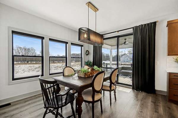 Located in the sought-after Hideaway neighborhood, this stunning 5-bedroom, 3 full and 2 half bath home offers the perfect blend of modern luxury and everyday functionality. Showcased in the Parade of Homes for its standout design, function, and craftsmanship throughout. Thoughtfully designed, this home features a 3-stall garage with a convenient mudroom entry, a covered deck for relaxing or entertaining, and a modern kitchen complete with a large hidden pantry. The fully finished lower level impresses with a second full kitchen and a dedicated wine room, making it ideal for hosting. Enjoy the best of both worlds with a peaceful country feel and a welcoming community, complete with walking trails throughout the neighborhood. Outbuildings are welcome. Ideally located just 15 minutes from Kent County Airport and 15 minutes to downtown Grand Rapids.