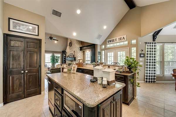 Nestled on a scenic 17.867 acre estate in Keller, 3325 Creek Road offers a rare combination of privacy, natural beauty, and residential flexibility within Keller ISD. The property includes three contiguous parcels, a 3,470 square foot custom home, a two acre stocked pond with fountain, a winding creek, and a deep water well, all surrounded by mature trees and peaceful greenbelt views. The traditional two story home features 3 bedrooms, 3 full baths, and 2 half baths, along with multiple living and dining areas designed for comfortable everyday living and entertaining. The kitchen includes an island, natural stone countertops, built in cabinetry, and an eat in breakfast area overlooking the acreage. The main level primary suite offers a sitting area, walk in closets, and an ensuite bath with dual sinks, jetted tub, and separate shower. Upstairs bedrooms include ensuite baths and walk in closets, along with a game room. Outdoor features include an outdoor pool, covered porches, three car garage, private road access, and an uncovered dock along the waterfront. The acreage provides space for recreation, privacy, and potential future residential opportunities subject to city approval.