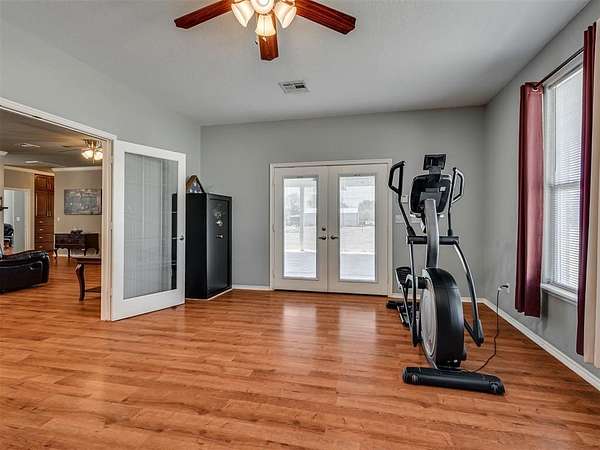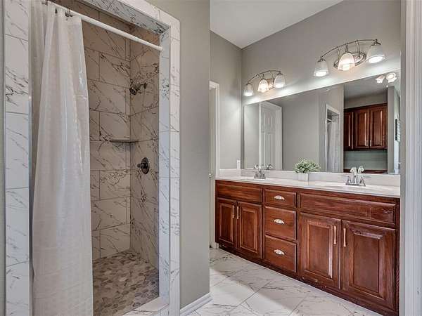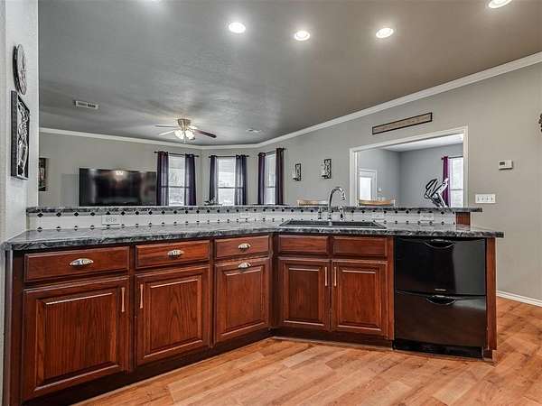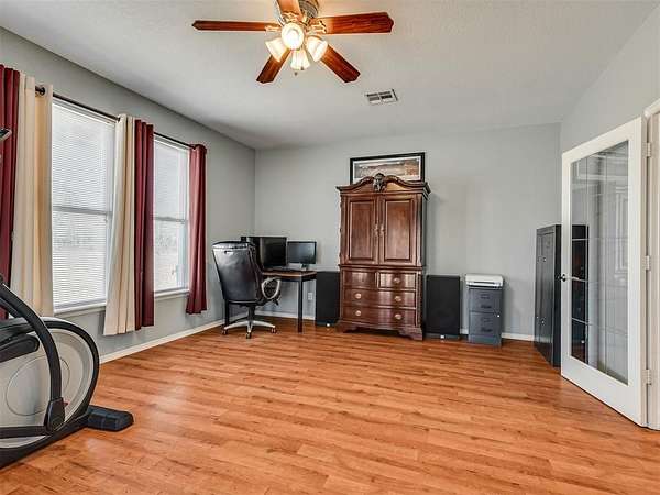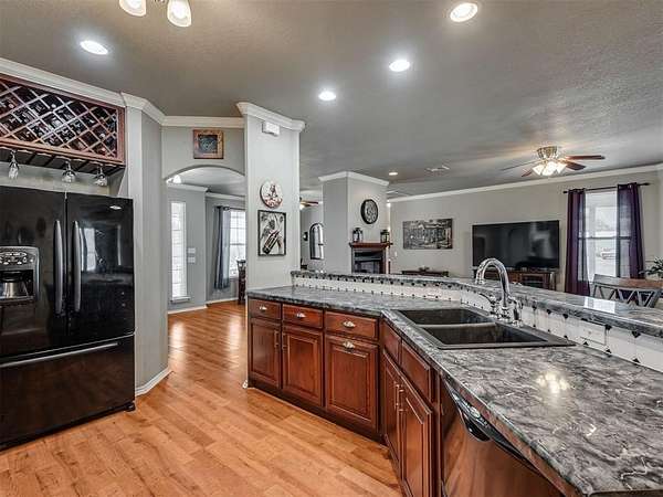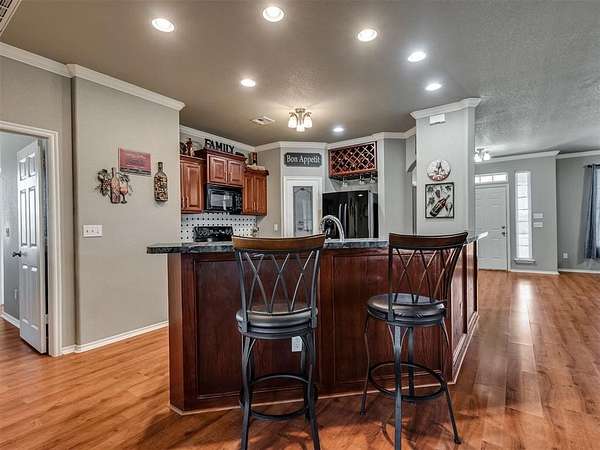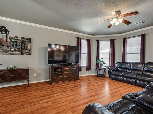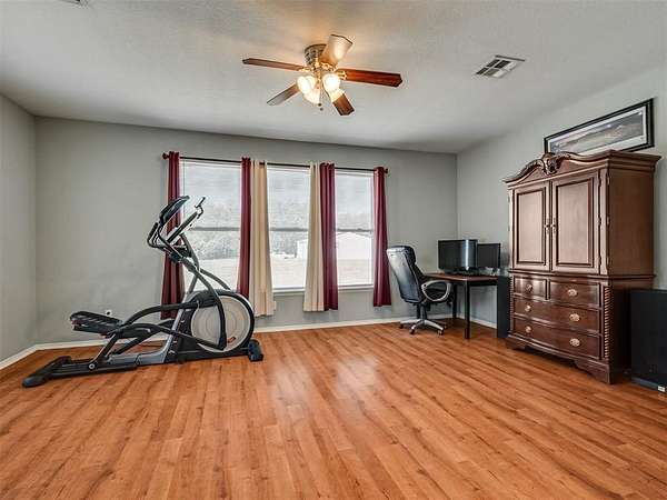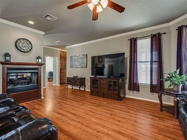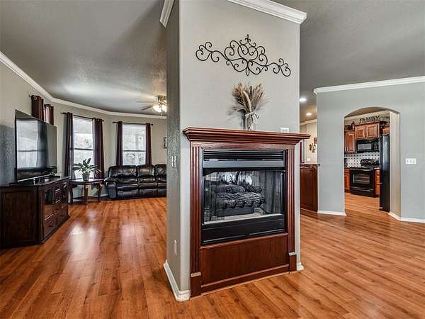 If you've been searching for space and a home that truly stands out, this is it. Beautifully maintained, this 3 bed, 2 bath home offers 2,219 sq ft of living space designed for both comfort and everyday living. The inviting layout is highlighted by a stunning double-sided fireplace that connects the living area and dining room, creating a warm and welcoming atmosphere from the moment you walk in. The kitchen overlooks the living room and features a breakfast bar with seating and a walk-in pantry. A dedicated study or game room adds flexibility for work or entertaining. The spacious primary suite includes an en-suite bathroom with two walk-in closets, a whirlpool tub, and a separate shower, perfect for unwinding at the end of the day. Outside, you'll appreciate the added convenience of the 4 ft chain link fenced backyard and a 30x40 shop with electric. Located in the McLoud School District and less than 10 minutes from Wes Watkins Reservoir, this property delivers the space you want with a location that's hard to beat.