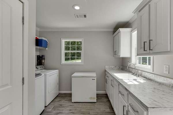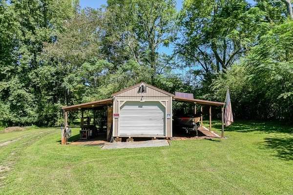 Don't miss this unique opportunity for a nearly new manufactured ranch home on a 3.25-acre lot with no HOA that includes a large detached storage shed. The home sits well off the road, where it can't be seen for great privacy. This 2022 home features a large open kitchen with loads of white cabinetry, farm-apron sink, work island with serving bar, gas range, a large walk-in pantry, and dining area. Spacious family room that is open to the kitchen. Laminate hardwoods throughout the home. Large master bedroom with a ceiling fan. Master bath with a tiled walk-in shower with a bench seat, and a walk-in closet. Split-bedroom plan with two spacious secondary bedrooms sharing a hall bath. Huge laundry room with exterior entrance, plenty of cabinetry, and built-in sink. Large covered rear porch with total privacy. This property has plenty of trees as well as open pastures, and would be ideal for someone who might have trucks or equipment that they want to keep on-site, as there are tons of storage, parking, etc., plus an oversized parking pad. To further add value, this property has AT&T fiber internet. This one is very clean, ready to move in and enjoy. It won't last long with all the possibilities!