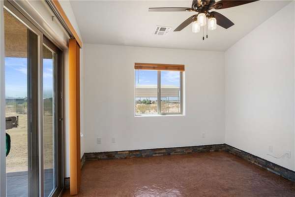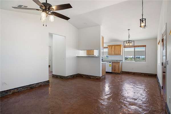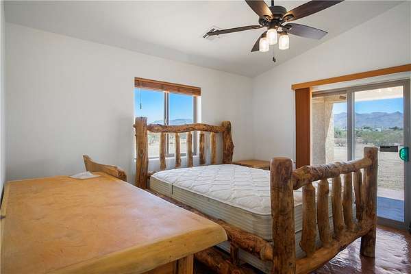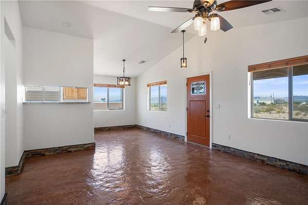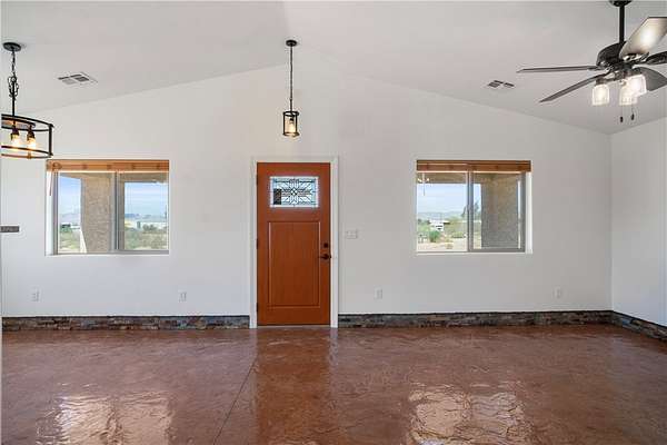 BRAND NEW - (in a sense) - 2021 Build Never Lived In City Water No HOA! RV-Ready Fully Fenced 2.35 Acres Designer Touches Welcome to this never-lived-in 2021-built home nestled in the heart of Golden Valley with breathtaking panoramic views, city water (no hauling!), and no HOA. This property combines functionality, freedom, and rustic charm with modern comforts. Step inside to discover upgraded stamped concrete floors throughout and pull-down attic doors for extra storage. Walls are insulated The master bedroom is tastefully furnished with a cozy log cabin-style bed, dresser, and two nightstands. Unused range and dishwasher add to the "brand new" feel of this home. Outdoor Highlights RV carport (19x41 ft) with electric hookups & RV dump station Connex storage unit with electricity & A/C 5 bed / 4 bath-rated septic system 6 hose bibs & in-ground irrigation system Covered front & back patios with stamped concrete Gated entry and fully fenced 2.35-acre lot Enjoy privacy, mountain views, and the convenience of being within walking distance to Dollar General, a gas station, and the local medical center. ** A rare find move-in ready, never used, fully equipped, and full of potential.