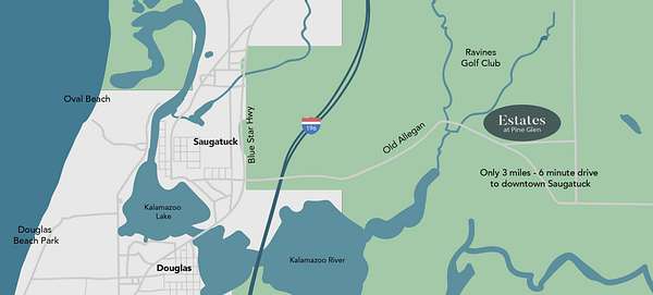 Blue Star Highway, 2.9 miles W on Old Allegan Rd, slight L on 133rd to Estates at Pine Glen.