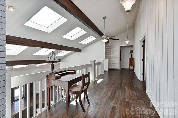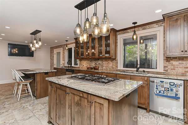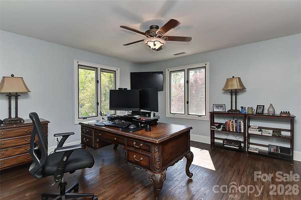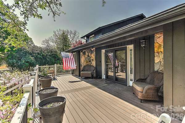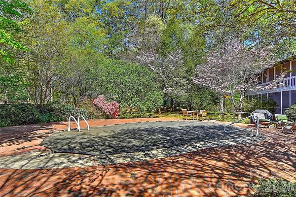 Fabulous California style home on a lush, private, peaceful cul-de-sac. A huge Trex floored front porch welcomes you into a spacious home featuring a huge atrium with a fireplace and an open staircase to the upstairs 4 bedrooms. The primary bedroom has a glamour bath w/ heated floors and built-in closets. Also, off the primary is a yoga /flex room. The upstairs opens to a full length porch which overlooks the salt water guanite pool and private back yard. Downstairs a beautiful dining room with built-in custom cabinets and room for a large table. The kitchen has a thermador gas cooktop, two double ovens with convection and two dishwashers. A kitchen for a gourmet chef with beautiful stone counters and custom cabinets. A guest room/study is downstairs along with private bath, many closets and pantries. The large living room w/ a wood burning fireplace could be a wonderful game room. The garage is being used as a workshop/art studio. Roof 2-3 years old. 2 water heaters. Wired for an EV- charger does not convey. The two fireplaces and pool are being sold as is. No know issues.