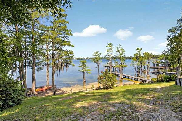 240 feet of Compass Lake frontage, 9 acres, a beautifully designed home and more! (Professional photos coming soon) This gorgeous home has lake views from the living areas, kitchen and bedrooms and multiple out buildings with water access points including a dock with a large gazebo, boathouse, and ski dock setting this property apart. The stunning 3 bedroom/ 2 1/2 bath house includes a 2 car garage that can be used as a playroom or 4th bedroom, 10 ft ceilings, large living area, two eating areas, and huge back porch overlooking spring fed Compass Lake. This stunning property includes a detached 2 car garage building (30x27) and shed/1 car garage (20x12) matching the finish of the main house, and an additional large RV storage barn with electricity and water. The property includes acreage that could be divided and a lot at Compass Lake in the Hills giving you access to the club house and swimming pool. This one of a kind lake home is turn key ready for your family to enjoy.