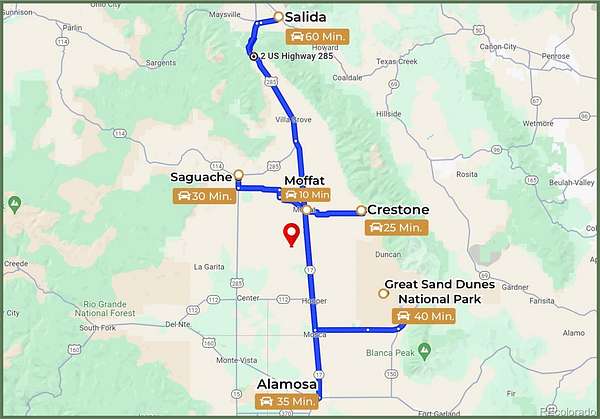 - Views of the Sangre de Cristo mountain range to the east and the San Juans to the west.