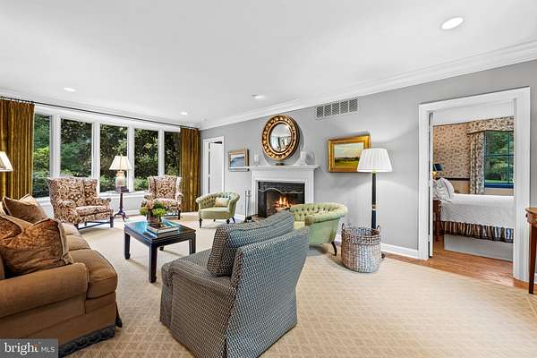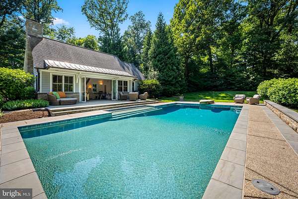 Trust your instincts. Experience unfettered livability and complete privacy on this estate property situated upon 3.5+ acres within a vibrant Greenspring Valley neighborhood. Pass through the neighboring golf course and enter the long private drive to find this remarkably stylish, totally renovated and expanded colonial together with the extraordinary pool house beckoning you to escape to personal retreat and opportunity for grand celebration. Step back in time 45 years to witness the relocation of the Circa 1900s farmhouse, then fast forward 25 years to envision a new family begin a series of masterful renovation and expansion projects, now realized. The residence features meticulously crafted architectural elements, millwork, fine finishes, high-end systems, five fireplaces, and a harmonious unity of traditional elegance and contemporary design. Entertain with ease in the stunning formal living and dining rooms, and casual spaces filled with natural light. Oversized doors open to the surrounding gardens, covered porches, and bluestone terrace with sitting walls for seamless flow between indoor and outdoor spaces. The spacious family room with brick herringbone floor, woodburning fireplace and entertainment center opens to the deluxe chef's kitchen anchored by a large island with breakfast bar and features premium wide plank oak flooring, honed marble counters, pantry, a gas fireplace for seasonal enjoyment, and space for informal dining. Deluxe stainless appliances include a 6-burner gas cooktop, double wall ovens, and warming drawer. Nearby, a mudroom with cubbies and closets serves as a butler's pantry with second refrigerator, laundry hook-up, and convenient dog wash. A main level bedroom suite offers private getaway for guests and is adjacent to a charming study opening to a covered porch facing the heated pool, providing the ultimate remote workspace. Ascend to the gracious primary suite which includes two large walk-in closets and a luxurious white marble bath with soaking tub and steam shower. A gallery hallway leads to three additional bedrooms, two full baths, and laundry. The finished walkout basement provides generous storage and space for play or second home office. Designed by Peter Ratcliffe and constructed by John Tiralla, the 1000 sq. ft. hallmark pool house with towering ceiling, exposed reclaimed beams, entertainment kitchen, laundry, full bath, and magnificent stone fireplace is the capstone to this fabulous property. Exterior folding walls of glass create a wide unobstructed opening between the party structure and the glorious 40-foot heated pool, nearby heated spa, and expansive terrace. The unfinished basement beneath the structure offers space for full-swing golf simulation, and fitness and fun enthusiasts might be tempted to create a first-class gym, home theater, or wine cellar. Car collectors will value the additional detached three-car garage, and avid gardeners will appreciate the perimeter deer fencing, cattle grate, and irrigation system. Enjoy resort living at home and imagine jumping on your golf cart on a whim, relaxing on a deck chair, or barbecuing poolside with a crowd. Located just minutes from I-695, excellent shopping, restaurants, schools, and metro Baltimore, this beautiful property offers convenience, quality, tranquility, recreation, and community. Please do not enter private driveway without appointment - dog on premises.