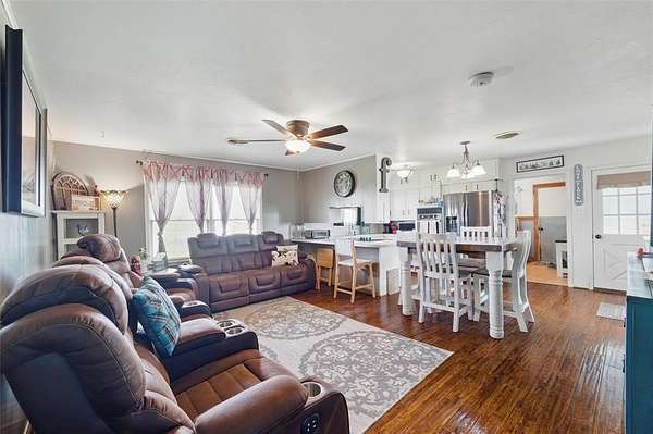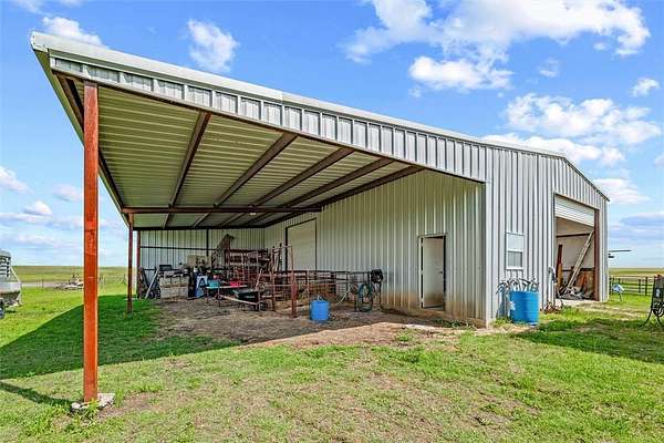 Country Roads Take Me Home !The opportunity for your very own Little House on the Prairie, complete with Farm and Ranch setup, has arrived! Also great for commercial use.A rare find! This 22.673 acre fenced Farm and Ranch includes a cozy and quaint Prairie Style Farm Home featuring cabinet space galore, eat in kitchen and formal living area which offers multiple options for living, dining, office, or playroom. Just off the garage you will also find a large laundry room with shower, perfect after a rewarding day working your cattle or crops. Step outside and enjoy a glass of lemonade under the pecan tree as you soak in the clean country air and wide open spaces or enjoy the stars on the wide-open Prairie during the serene evenings. Your new Home comes complete with Rustic Vintage Barn with stalls and tack room as well as an additional 1,500 square foot metal building with a 50 x 25 open covered section for carport, RV,or patio. This solid metal structure on slab foundation building includes electricity, both 50- and 30-amp RV hookups and is also plumbed for water. Two rollup 12 x 12 doors give easy access for boat or camper storage, cars or workshop. Fantastic Barndominium potential opportunity awaits creative buyers with a Texas vision.