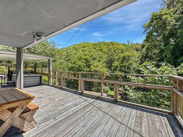 Tucked away in the serene Smoky Mountains, this charming and fully furnished 2-bedroom, 2-bath home with a versatile bonus room perfect for additional sleeping space, a home office, or a creative studio is ready to welcome guests or become your personal haven. Thoughtfully updated, including a brand-new HVAC/heat pump installed in 2024, this property blends comfort and functionality with mountain charm. Whether you're relaxing on the spacious covered porch, soaking in the hot tub or gathering around the firepit under the stars, this home invites you to unwind. The 3.2 acre property features a level, low-maintenance front and backyard, ideal for easy living or outdoor play. Enjoy the best of both worlds: peaceful seclusion with the convenience of easy, direct access off a state-maintained road. Located less than 20 minutes from downtown Bryson City and the Great Smoky Mountains National Park, and a short drive to Fontana Lake, you're perfectly positioned to explore everything this beautiful region has to offer. Whether you're seeking a full-time residence, a mountain getaway, or an income-producing rental, this property is truly a turnkey opportunity.