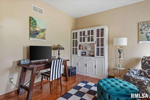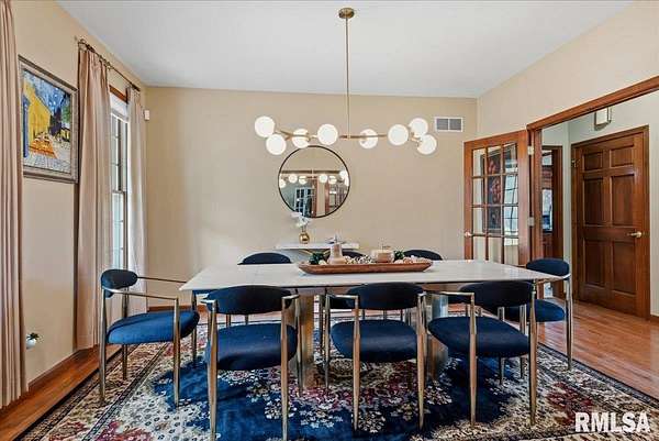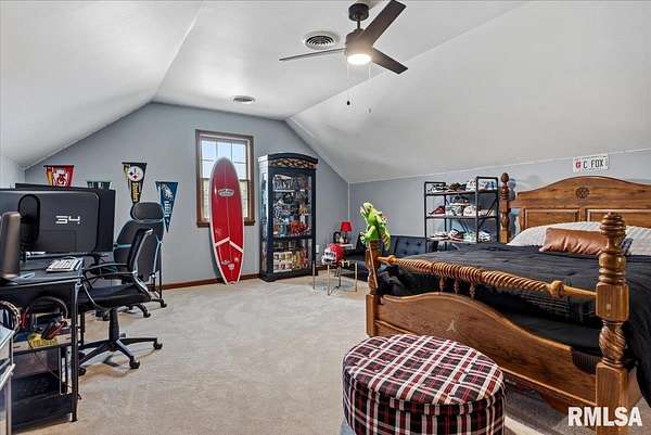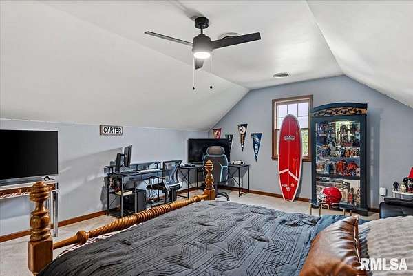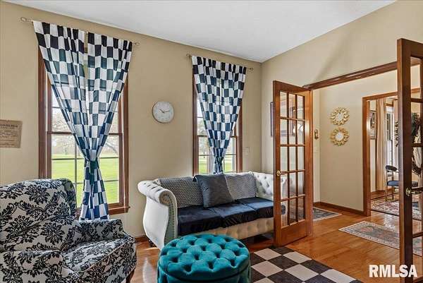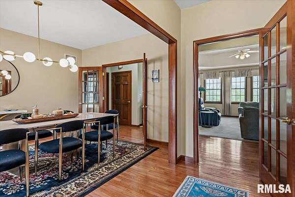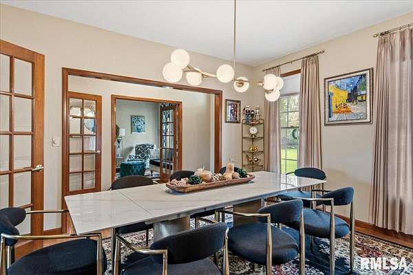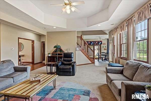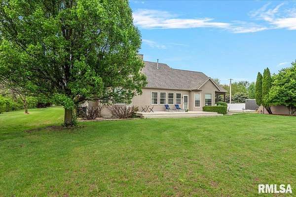 Charming country property offering peaceful rural living in the Chatham school district just minutes from I-55 and Springfield. This well-maintained home sits on 6.16 acres with plenty of room to enjoy the outdoors, garden or entertain. Inside, you'll find a comfortable layout with 4 bedrooms, 3 full baths, den/office, formal dining room, main floor laundry room and 3,300 sq ft of generous, light filled living space. The spacious primary is located on the main floor with an en suite bath and walk in closet. The great room has a gas burning fireplace and beautiful tray ceilings. The large basement provides endless possibilities for additional living space, recreation room with a bar and pool table, or storage. Outside, enjoy wide open views from your porch or deck and room to roam where a creek runs through the property. There is an extra 2 car detached garage with loft-ideal for hobbies, storage, or workshop space. A rare opportunity to own a move-in ready country retreat with room to grow. Both furnaces and A/C replaced within the last 7 years. Roof ('23), water heater ('23). Public water and natural gas. Sellers have added a parking pad with electric hookup and new fence along the driveway for added privacy. All newer appliances will stay with the home including the washer and dryer. Selling as is.