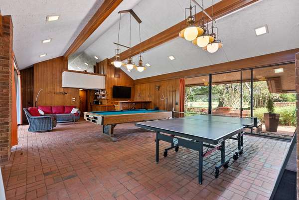 A true modern architectural masterpiece. E. Fay Jones—famous for dramatic residential creations—designed this home for the McNamee family, and now it could be yours. This home features so many gorgeous finishes that would not even be possible today and definitely NOT at this price point. The sprawling estate is absolutely breathtaking and 2025 has been a year of updating! Located all on one story with open and inviting spaces that incorporate nature into his design. Like his mentor Frank Lloyd Wright, Fay Jones used a mix of natural materials and strategic placement of clerestory windows and glass to invite the outside in. All the bedrooms open to courtyards and private outdoor spaces. Each of the four bedrooms also offer private access to en-suite bathrooms and feature custom wardrobe cabinetry. The entertaining and living spaces of this home will amaze you!! 3 fireplaces and 2 bars!! Brand new roof and appliances. This one is worth the drive! Located on 9 acres!