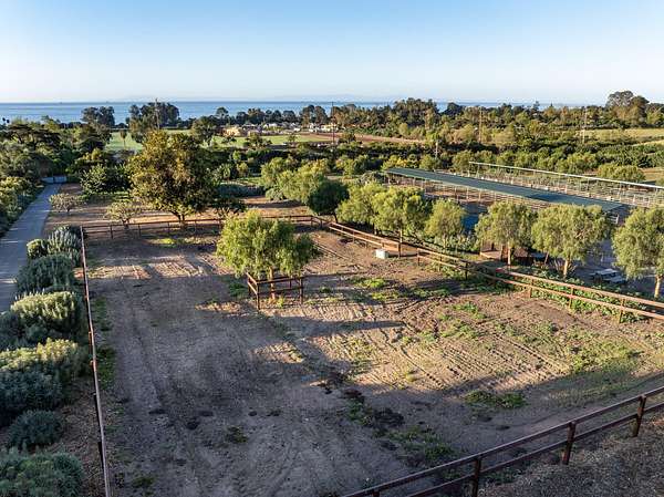 Perched in the foothills of Carpinteria with sweeping ocean views and direct access to the Santa Barbara Polo & Racket Club, this Hacienda-style ranch offers a rare blend of coastal living and premier equestrian amenities. The home features 3 bedrooms, 3 bathrooms, and a large private bonus suite with its own living area, four double beds, full bath, and separate outdoor space with ocean views--ideal for guests or extended stays. Two bedrooms are en-suite, including a private upstairs suite with dual balconies, and a second suite on the opposite wing with a large balcony overlooking the ranch, ocean, and polo fields. Vaulted ceilings, expansive windows, and sliding doors showcase panoramic ocean, mountain, and field views throughout. Bright interiors and spacious living areas open to shaded patios, perfect for indoor-outdoor living. The home maintains a unique retro ranch style, thoughtfully updated to preserve its original character. Equestrian facilities include a 32-stall covered pipe corral, 7 wood-fenced paddocks, tack room, and direct private access to polo fields. The property also features mature avocado and cherimoya orchards. Set on scenic acreage with terraces, courtyards, and multiple view points--just minutes from beaches, hiking, and downtown Carpinteria. A truly one-of-a-kind coastal ranch opportunity.