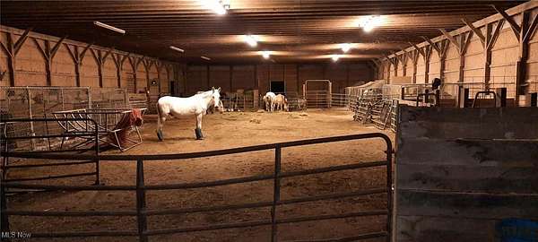 Wow! Everything about this hobby farm lives large! Big rooms, big buildings & BIG possibilities for anyone interested in a hobby or horse farm!From the gracious front "sittin'" porch to the 18x16 back deck, there's plenty of outdoor space to relax & enjoy this very rural vibe.HUGE living room w/ a stone FP & hearth, 2 first floor full baths, BIG formal dining room for all those large gatherings, bedroom, kitchen w/ pantry, home office w/ a view of the street & drive & 2 other sitting areas (private TV spot & sunny breakfast nook) round out the first floor of this roomy classic farm house.2 large bedrooms & a cozy nook at the top of the staircase complete the 2nd floor.Laundry is in the full basement, which offers the coal/wood burning furnace for low cost winter heating & lots of storage room.Outside, you cannot BEAT the value of these outbuildings! Do the math on the 140x64 indoor arena, the 28x16 tractor barn, the 56x18 garage, the 56x34 stable & the other miscellaneous smaller outbuildings. Room for all your animals - a place to ride in the winter months - plenty of fenced pasture already in place - approximately 5 acres of woods for your private trails - gated driveway - this list goes on! (Any stall mats already in the horse stalls will stay). This could be an amazing opportunity for someone who wants to run their own training/boarding/show stable.Septic pumped March of 2025 & the sellers LOVE the quality & quantity of their well water, although there is public water available at the street.Septic was camera scoped & diverter box replaced in 2022. Located just minutes from the Greenway Trail, grocery store, Route 45 for easy access, area wineries & local restaurants! Ask your Agent about the possibility of free gas heat for the life of the well! (The home office could also be used as a 4th bedroom).