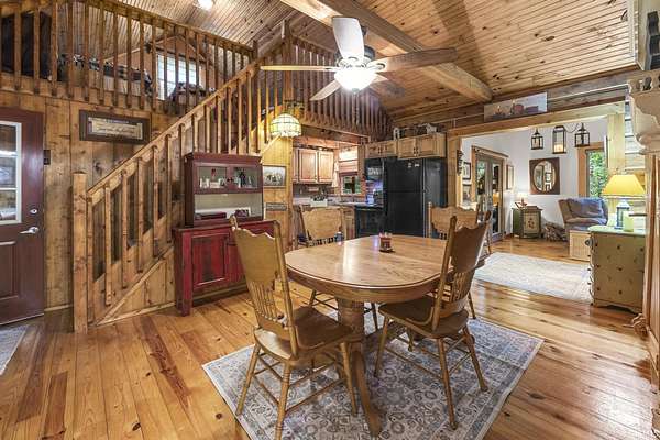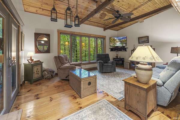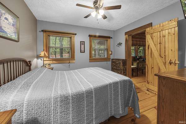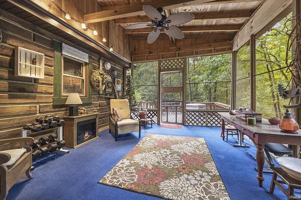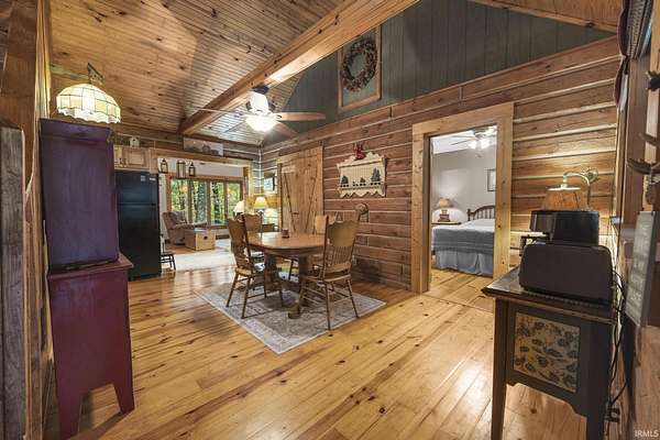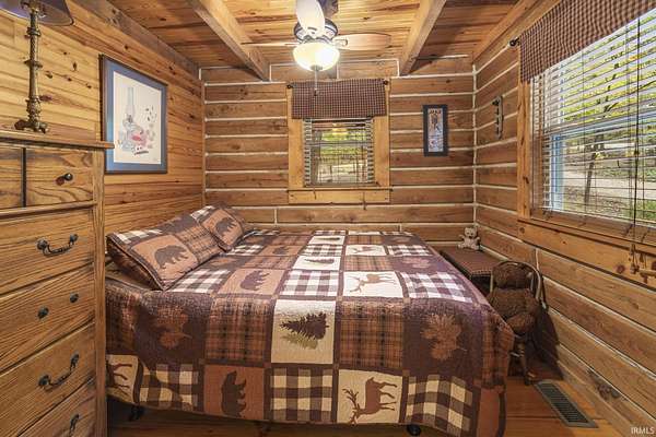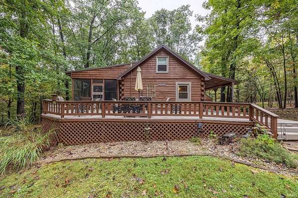 Est $1,944/moEnjoying the sights and sounds of the woods from this beautiful log home located minutes from Patoka Lake. The spacious living room with picture windows overlooks the serene setting. The screened-in porch is a wonderful place to drink your morning coffee or relax in the evening. Friends and family will love hanging out around the fire pit. This home has two bedrooms on the main floor, and a third bedroom in the loft. It currently sleeps 7, but there is plenty of space for 9 with a pull-out sofa. This property also has two nice storage sheds.