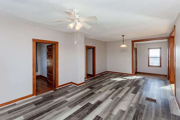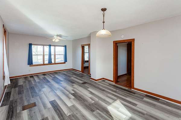 The property includes an early-1900s 1 1/2 -story farmhouse with 1,523 square feet of finished living space, offering three bedrooms, one bathroom, and central air and heat. The main level features an open-concept layout with a spacious living room and kitchen. The home has been well maintained over the years and includes updates such as a newer roof, newer flooring, and additional improvements.