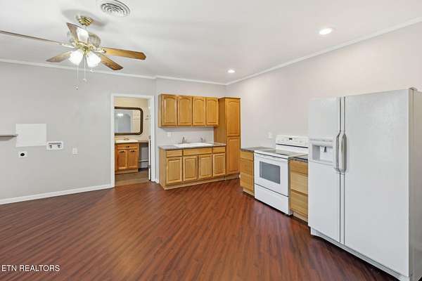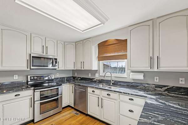 REDUCED! Looking for an apartment complete with a full bath, kitchen, and laundry? This stunner offers a full basement one, or coveted mother-in-law suite, boasting a separate entrance for privacy and ease. Step into a world where charm meets modern luxury in this expansive 4,300 square foot home, perfect for those who appreciate both finesse and functionality. Imaging finding not just one, but two havens under a single roof - As you enter the main living area, let the warmth of gleaming hardwood floors welcome you into an open-concept space bathed in natural light, thanks to vaulted ceilings and an inviting screened porch. Imagine cozy evenings spent in the company of loved ones or quiet mornings with a coffee in hand, enveloped by the serene views of your manicured surroundings. The house features a thoughtful layout with three well-appointed bedrooms, including a spacious primary bedroom on the main level that promises a retreat from the everyday hustle. A second bedroom on the main level assures a close-by feeling for anyone who may need that assurance. Each of the four bathrooms reflects a commitment to comfort and style, complete with modern fixtures and finishes. Culinary enthusiasts and entertainers alike will delight in the chef's kitchen beautifully updated with painted cabinetry, granite tops, and stainless appliances, which opens seamlessly into the living areas, affirming the heart of the home is where memories are made. Step outside to your private backyard oasis, where a flagstone patio and fire pit set the stage for enchanting evenings under the stars. In the summer and fall months, you'll appreciate the dwarf fruit trees lining the rear property line consisting of cherry, peach, and two different types of apple, including heirloom honeycrisp's from the family farm in Hartford, TN, located in Cocke County. Car enthusiasts will find the two separate garages a dream come true. Whether it be for those with a penchant for woodworking with everything in place for a mitre saw station, you'd only need to add the dust collector, or a need to park the auto collection, you won't soon run out of space given you also are complemented further by an additional two-car carport - because one can never have too much space for hobbies or storage! Located just moments away is the verdant Solway Park, a local gem that offers a picturesque escape with walking paths and picnic areas - ideal for those Sunday afternoon family outings or a spontaneous nature break. Are water sports more you speed? No worries, you'll find the Clinch River the perfect spot for all related activities. This home isn't just a place to live; it's a place to live well, offering all the bells and whistles one could desire, from dual driveways for simplified guest access to an all-brick exterior that melds durability with classic beauty. Perfect for families looking for that extra bit of space, multi-generational living, or simply a splendid base to create, explore, and relax, this property promises a balanced lifestyle of convenience and tranquility. Prepare to fall in love with a home that takes living to an entirely new level - laughter and stories included at no extra charge!