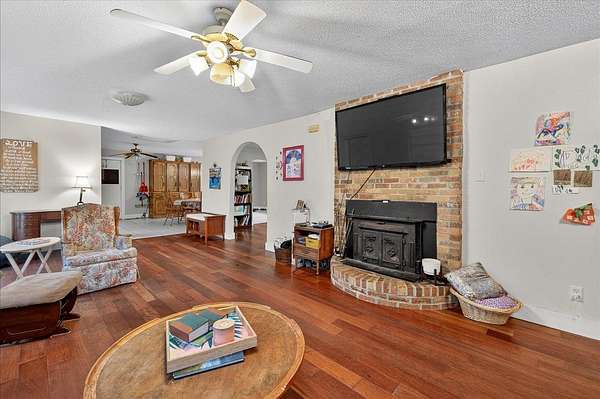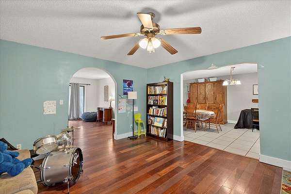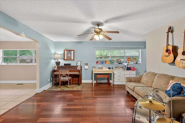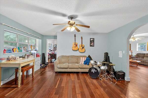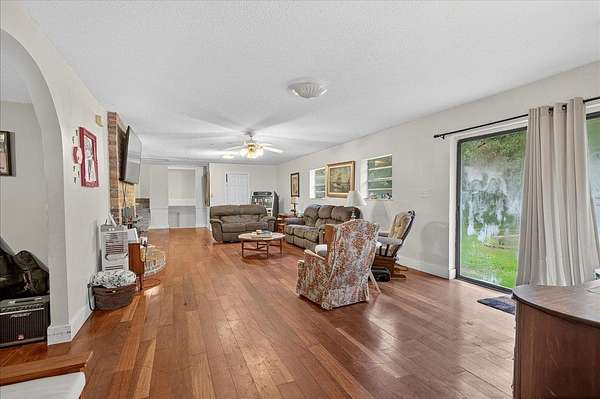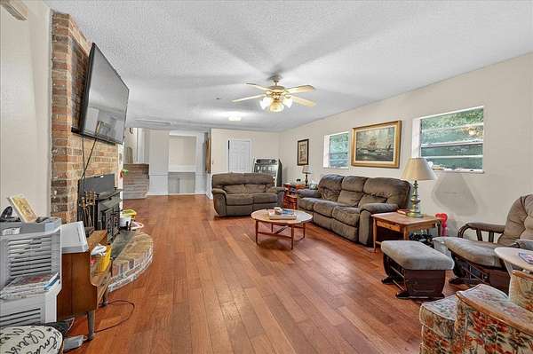 Looking for a large casual home on a bit of land just off the beaten path? Unafraid to take the task of a few projects to make it shine as your own? This home may be just the one! With 5 true bedrooms PLUS office, two living areas AND a flex room, this house can accommodate a variety of lifestyles. Outside you'll find durable block construction, an oversized two-car garage with built-in workshop benches, shelves, and cabinets PLUS a workshop washroom with toilet and sink. The spacious lot offers room to roam and lots of privacy from surrounding neighbors. Native plants include flowering shrubs and trees plus several fruit-bearing citrus trees! A natural pond at the rear of the property offers scenic views and wildlife observation opportunities also. Come and see!