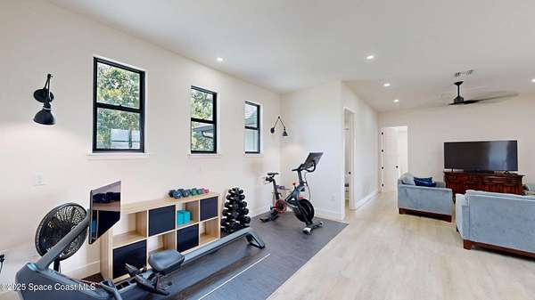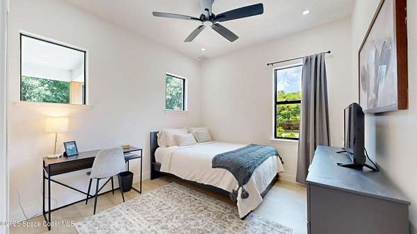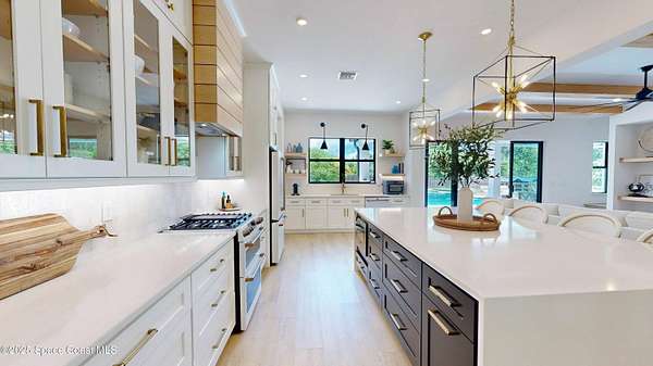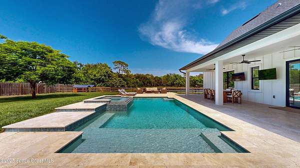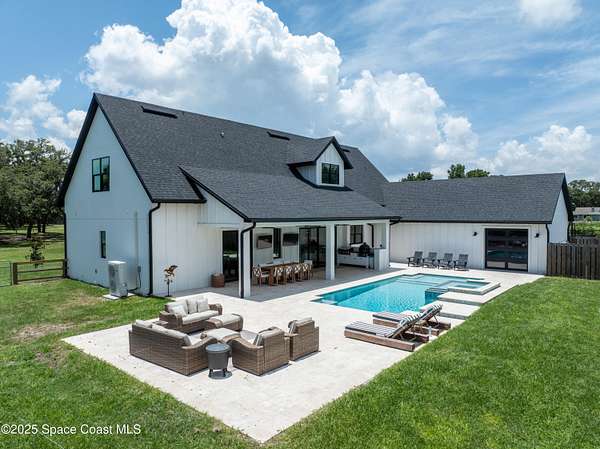 *Modern Farmhouse on 7 Private Acres with Lake & Pool* Rare opportunity to own a custom-built modern farmhouse on nearly 7 secluded, dry acres in the heart of Merritt Island. This 6-bed, 3-bath home features nearly 3,800 sq ft of stylish, functional living space-including an office, gym, and chef's kitchen with quartz waterfall island, GE Cafe appliances, and custom cabinetry. Enjoy a private 1.3-acre lake, heated pool & spa, outdoor kitchen, impact windows, propane fireplace, and a 1/4-mile private driveway. Zoned for top-rated schools and just minutes to beaches, shopping, and the Space Center. Room for horses, barn, or simply to relax in total serenity. Truly one-of-a-kind-schedule your private tour today! Updated exterior photos coming soon. Seller recently completed a major front elevation improvement and landscape project.