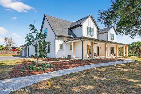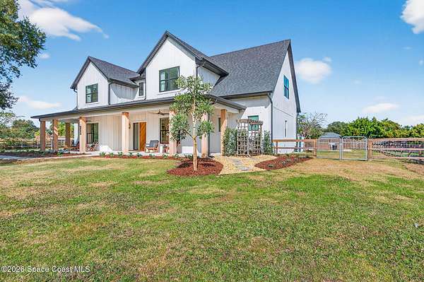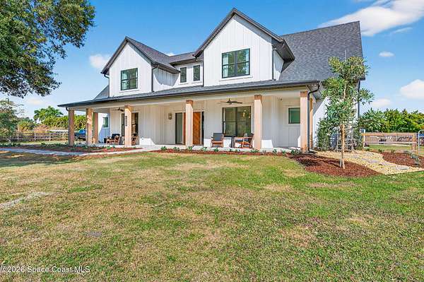 *Modern Farmhouse on 7 Private Acres with Lake & Pool* Rare opportunity to own a custom-built modern farmhouse on nearly 7 secluded, dry acres in the heart of Merritt Island. This 6-bed, 3-bath home features nearly 3,800 sq ft of stylish, functional living space-including an office, gym, and chef's kitchen with quartz waterfall island, GE Cafe appliances, and custom cabinetry. Enjoy a private 1.3-acre lake, heated pool & spa, outdoor kitchen, impact windows, propane fireplace, and a 1/4-mile private driveway. Zoned for top-rated schools and just minutes to beaches, shopping, and the Space Center. Room for horses, barn, or simply to relax in total serenity. Truly one-of-a-kind-schedule your private tour today! Seller recently completed a major front elevation improvement and landscape project.