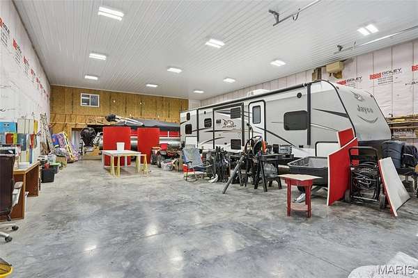 Some places feel like they were built just for you. This is one of those places. Picture waking up on 7.5 acres of Southern Illinois countryside, timber out the back, native grasses swaying in the morning light, and not a neighbor in sight. You step out onto the screened porch with your coffee, listen to nothing but birds, and think: this is exactly what we were looking for. And you'd be right. This one-of-a-kind rural retreat on Heavenly Drive is everything a Southern Illinois dream property should be, and then some. The home itself delivers 3 bedrooms and 2 full bathrooms with a walk-out basement that opens straight to the outdoors, making the transition from inside living to outside living effortless. When summer rolls around, that matters. Because outside is where this property truly comes alive. The in-ground pool and surrounding deck were made for long July afternoons, and the screened-in porch? That's your front-row seat to some of the best sunsets Clinton County has to offer, bug-free. But here's where it gets really interesting. The 40x72 outbuilding isn't just a shop, it's a statement. Heated with in-floor radiant heat, it includes a 12x40 loft and its own full bathroom. Whether you're a car collector, a woodworker, a contractor, a serious hunter, or just someone who finally wants a space to do your thing without compromise, this building changes the conversation entirely. Store your equipment, run your business, host the guys for the game, the possibilities are wide open.