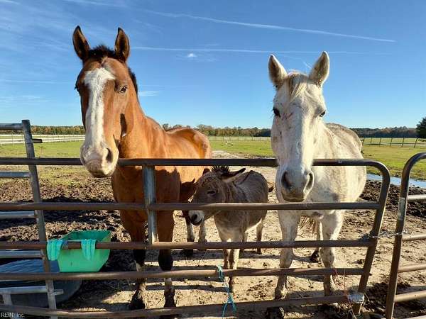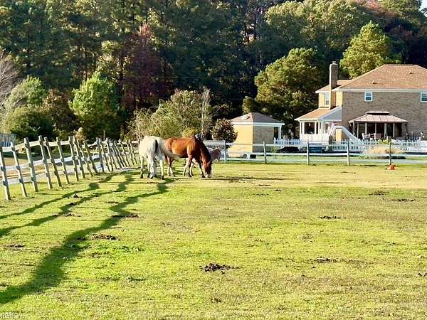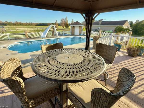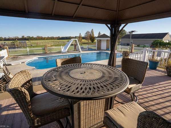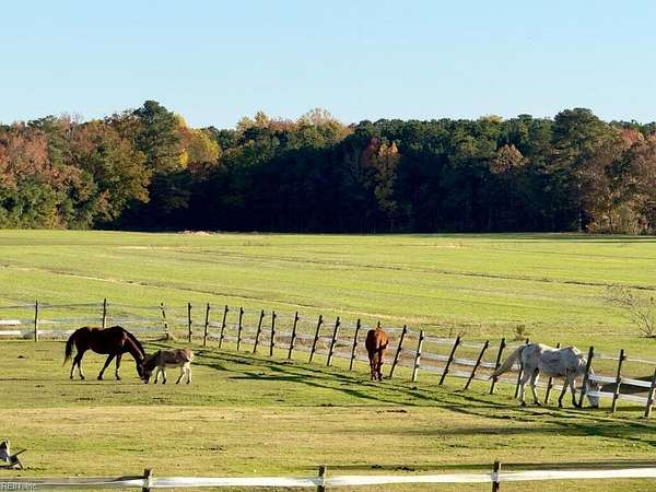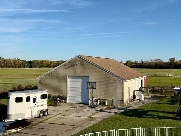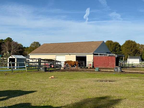 This is the home you've been looking for! Custom built beautiful one of a kind 2 story with new roof, newer heating A/C system upstairs, newer windows. Has 4 large bedrooms, 2.5 bath set on 3+ acres. Large open kitchen with granite countertops, breakfast bar and dining room. Large family room with fireplace looks out onto the deck of your own backyard oasis with a sparkling inground pool. Plenty of room for relaxing or hosting friends and family get-togethers. The backyard is set up for your homesteading with chicken coops, a fenced in pasture for the horses. Large, detached garage has 3 small stalls inside. Oversized 2 car attached garage plus a 2400 sq. ft. detached garage / workshop complete with electricity, half bath and det. compressor air lines for a craftsman, contractor or auto enthusiast and garage door access for an RV. This home is wonderful for the tranquility of rural living but centrally located to shopping and dining just minutes away from Chesapeake or Virginia Beach.