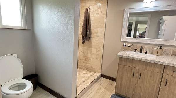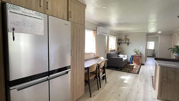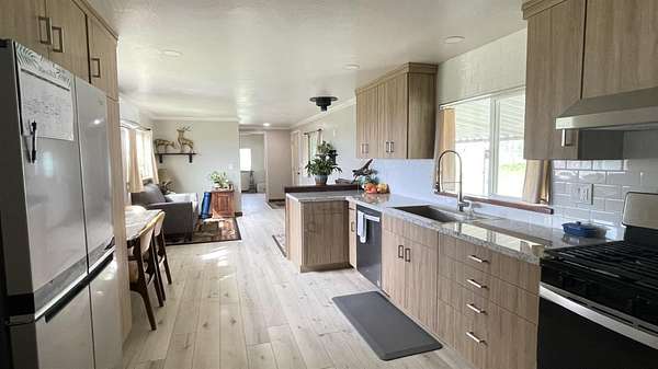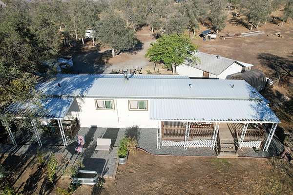 Almost 5 Acres of Serenity on the top of a hill with beautiful views of the foothills and San Joaquin Valley. The view of the City of Sanger is breath taking at night. You will love the Single Wide mobile home completely rehabbed a year ago and ready to move in. New sheetrock, insulation, plumbing, electrical, windows, mini split and flooring. New kitchen cabinets, granite counter tops, subway tile, stove and hood, Dishwasher, sink and faucet. Bathrooms have been redone. Hall bathroom has new tub with tile surround, and built in vanity. Main bathroom has new cabinets and granite counter tops, New tiled shower stall and laundry hook ups. There's a second potential pad to build your dream house or a shop with great views. 2 car garage, carport, and green house. The property is fenced and crossed fenced for animals. Automatic gate with opener.