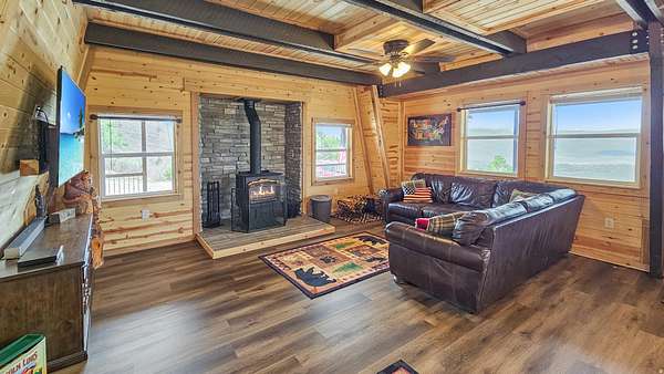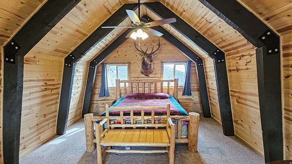 Escape to your own private mountain sanctuary with this fully furnished, off-grid cabin with incredible views, just 35 minutes from Spanish Fork. Located in Hideaway Valley. Set on 18.57 acres and no one will be build higher because it is backed by association land, this rare property offers unmatched seclusion and year-round accessibility. The main cabin features single-level living, wrap around deck, complemented by a spacious loft that sleeps up to eight which could be divided to make 2 additional bedrooms. A charming guest cabin ensures comfortable hosting for family and friends. Designed for independence, the property includes solar power with batteries, a 1,000-gallon gravity-fed water system, propane, and private septic. Experience outdoor living at its finest with private trails, a zip line, 3 golf pads, and clay shooting range. Additional features include 20-foot white storage container and two ready-to-build pads-one with power installed. 4WD/AWD ACCESS ONLY, you will need a vehicle with 4WD to reach the cabin.