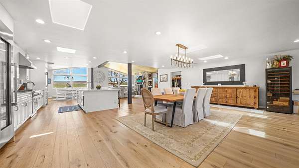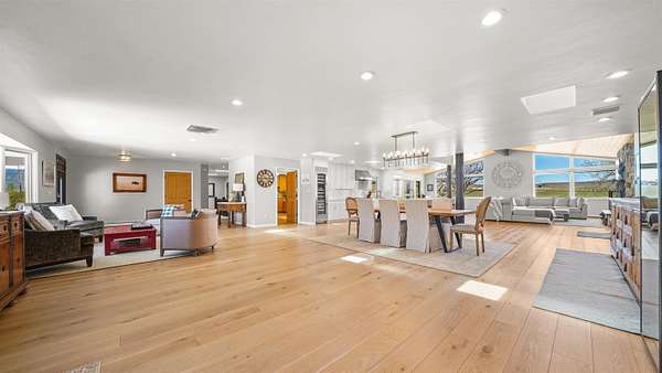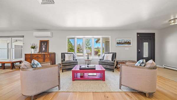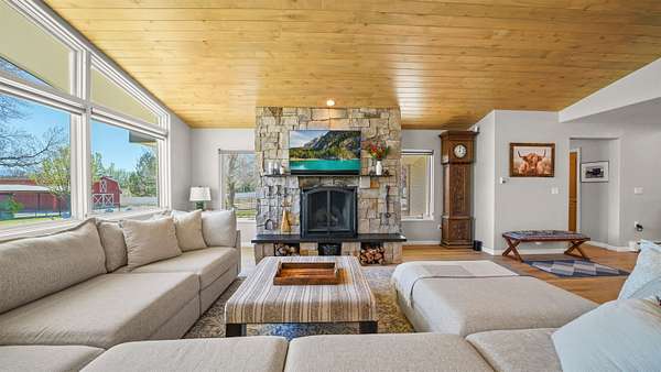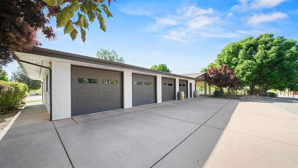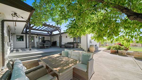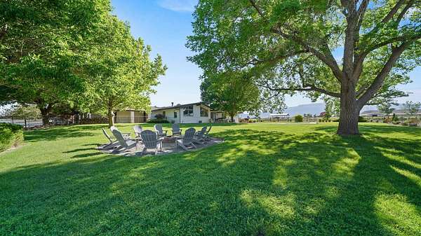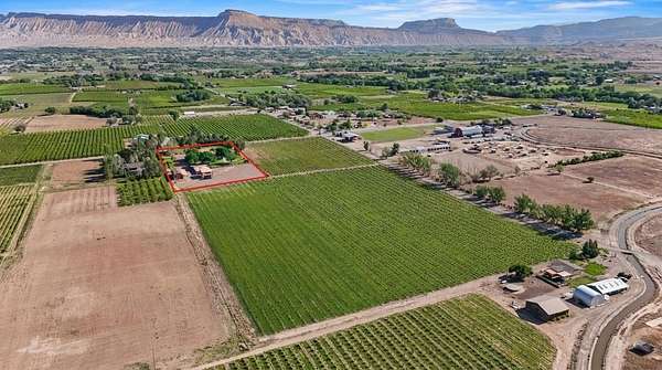 Welcome to your dream retreat on East Orchard Mesa-where luxury meets lifestyle on 3 irrigated acres surrounded by orchards and vineyards. This custom brick ranch offers privacy, panoramic views of Mt. Garfield and the Grand Mesa, and a rare in-ground pool! A grand circular driveway welcomes you to the beautifully landscaped grounds. Step inside to discover a stunning and expansive open-concept layout featuring vaulted ceilings, a custom stone fireplace, and a chef's kitchen equipped with quartz countertops, Thermador stainless steel appliances, and a spacious butler's pantry. The kitchen flows seamlessly into the formal dining area and great room, ideal for entertaining. The main level includes three generously sized bedrooms, each with its own ensuite bath. One suite offers private exterior access and can be locked off from the rest of the home-an ideal setup for a guest suite, or multigenerational living. Downstairs, the fully finished basement includes a large rec room and two additional bedrooms (one non-conforming). Step outside to your expansive patio with a custom pergola, overlooking a beautiful lawn, sparkling in-ground pool, and sweeping views of peach orchards and vineyards. The property also includes a well-equipped horse barn with electric service and an evaporative cooler, along with a separate metal pole barn and tack room-offering versatility for future agricultural use, hobby farming, or storage. With senior water rights for all 3 acres and 400 amps of power already in place near the pole barn, the property is perfectly positioned for everything from modern agricultural ventures to high-end recreational amenities or guest accommodations. Additional features include an oversized heated 4-car garage, solid core doors throughout, prep sink in kitchen and pantry, and a hobby vineyard planted with table grapes.