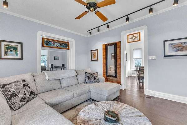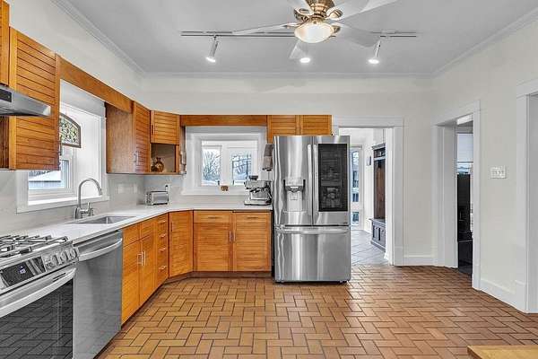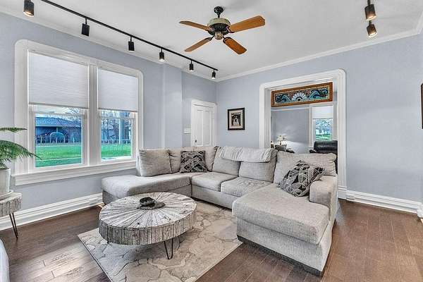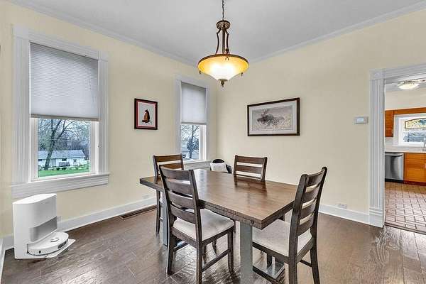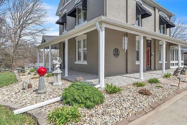 More than a century of stories live within these walls, and now it's time for the next chapter. This striking two-story brick home, built in 1911, sits on over two acres of lush, tree-lined grounds and carries the kind of presence that simply can't be built anymore. The wrap-around covered porch sets the tone the moment you arrive - freshly tiled and a natural gathering place for morning coffee or an evening wind-down. Inside, the floor plan balances original charm with everyday functionality: a formal living room, a separate family room with original stained glass transom, a formal dining room, and an updated eat-in kitchen. The kitchen shines with a new range and hood, new countertops, updated hardware, and a new sink and faucet. The all-seasons sun room with electric fireplace means you'll use and love every corner of this home year-round. Main floor laundry with a half bath keeps the practical side covered. Upstairs holds three bedrooms and a full bath. Fresh interior paint throughout and a newer electrical panel round out the updates, giving you the bones of a historic home with the confidence of modern systems. Outside is where this property truly distinguishes itself. The irrigated lawn and ornamental gardens stay effortlessly manicured, and the wood deck with its covered pergola - complete with a chandelier and wicker seating area - makes outdoor entertaining easy. A dedicated outdoor sink is a gardener's dream. Multiple outbuildings offer flexible space - including a dedicated potting shed and a spacious hobby building with wood stove, skylights, and room for a gym, workshop, or studio - and the large detached garage accommodates 4 to 6+ vehicles plus equipment with ease. The 78 owned solar panels mean your electric bill is rarely more than a conversation piece. A property with this much history, this much land, and this much thoughtful updating doesn't come around often.