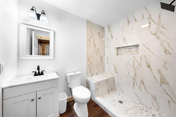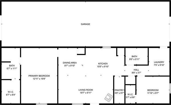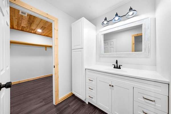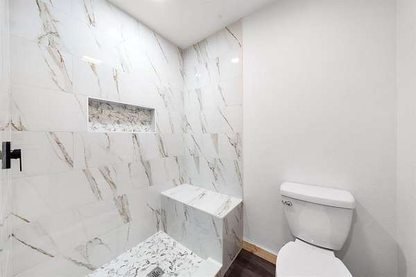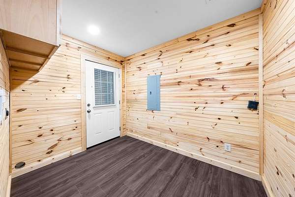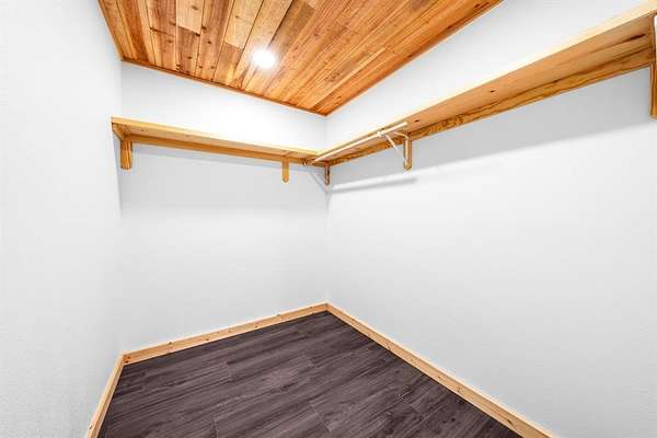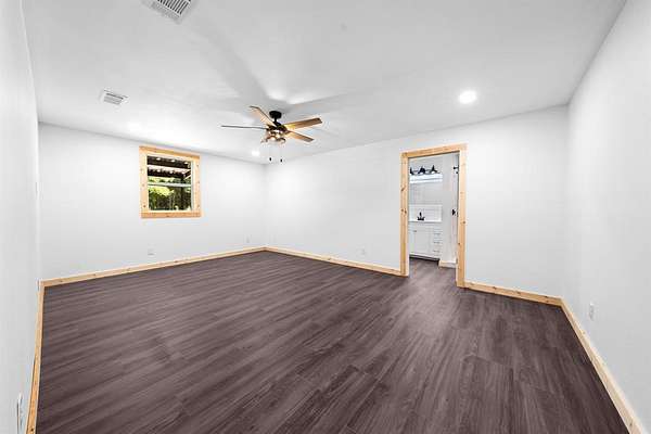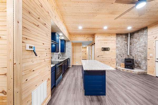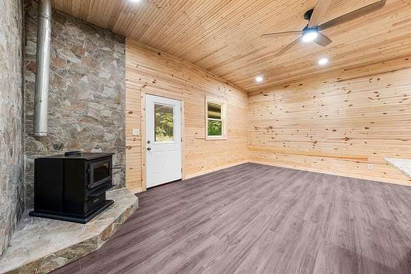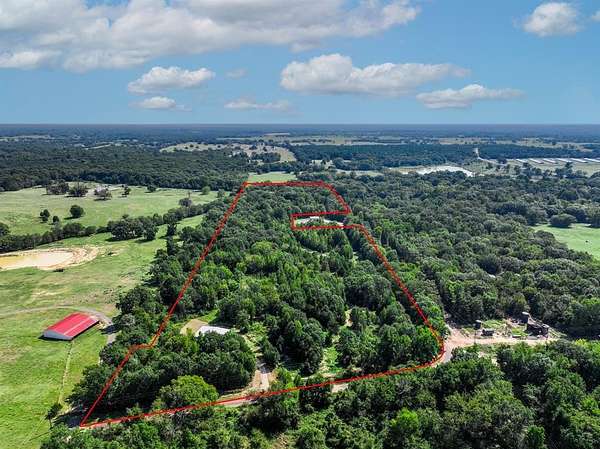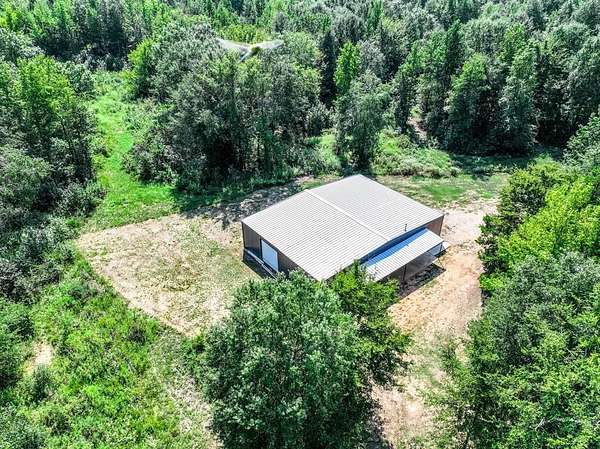 Tucked behind trees on 24 acres, south of Como, is where you'll find this 2bed-2bath cabin-y barndominium! A gated entrance provides additional privacy on this wooded tract. Enjoy the scenic setting and wildlife while sitting on a long front porch. Inside, you'll find light wood walls and a wood-beam ceiling with recessed lights. During cool Autumn nights or cold winter ones, stay toasty warm from a wood-burning stove with a stone hearth and wall. The kitchen includes granite countertops, an island with extra seating, stainless steel appliances, stone backsplash, and a walk-in pantry. You'll appreciate the split bedroom design that allows separate areas between the main ensuite bedroom and the guest bedroom. Marble countertops and walk-in showers with tile and bench seat are located in both bathrooms. The main bedroom also comes with a walk-in closet. Luxury Vinyl Plank flooring and ceiling fans are found throughout the home. The garage can also be accessed from the laundry room. Take a look at this 2021-built home located in a quiet area southeast of FM 1567, surrounded by woods and neighboring pastures!