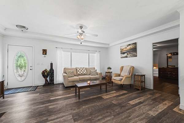 - Auto Garage Opener, Carpeting, Ceiling Fan(s), Pantry, Shades/Blinds, Smoke Detector(s), Tile Flooring, Vinyl Flooring