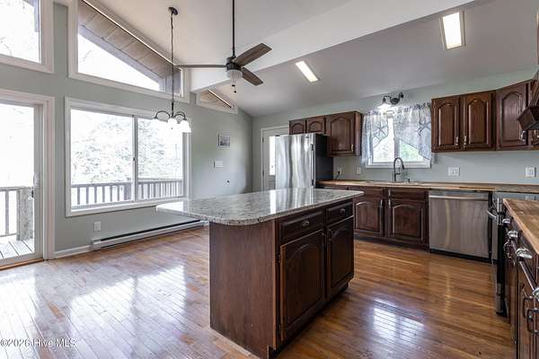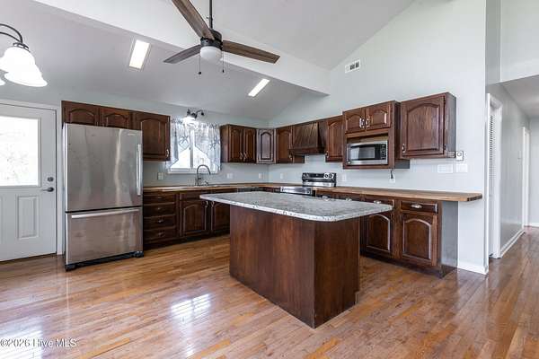 - Ceiling Fan(s), High Ceilings, Kitchen Island, Vaulted Ceiling(s)