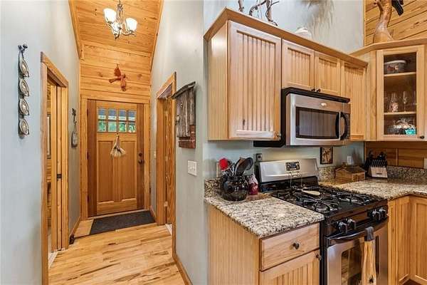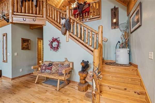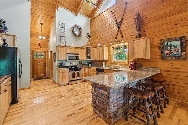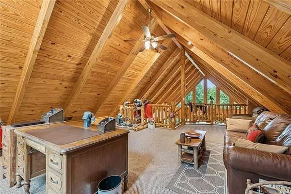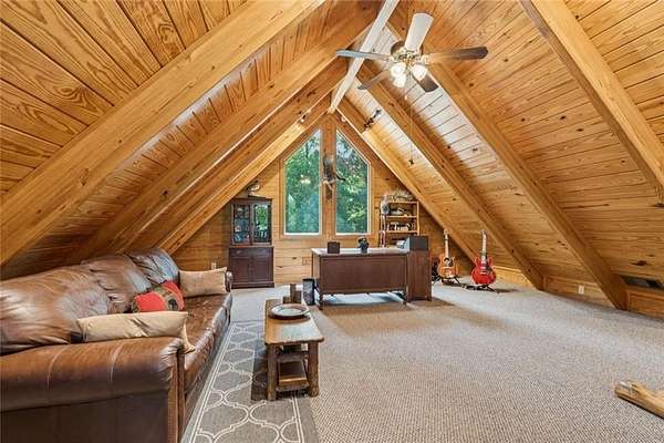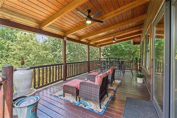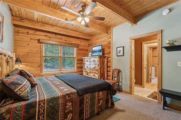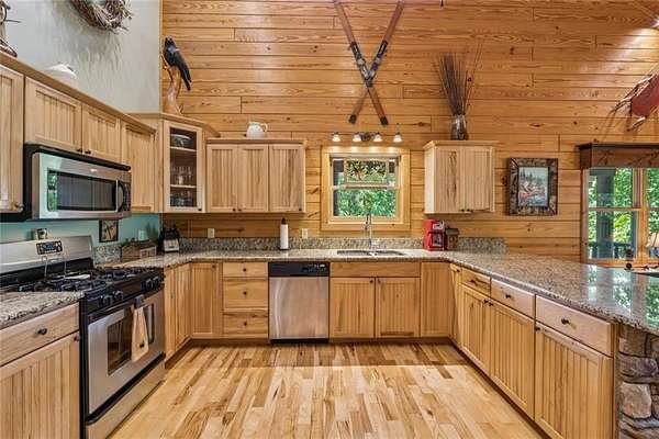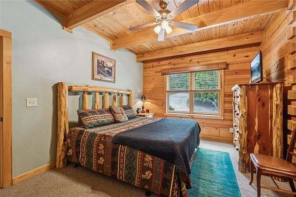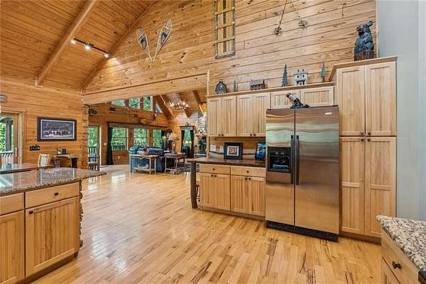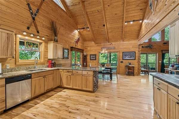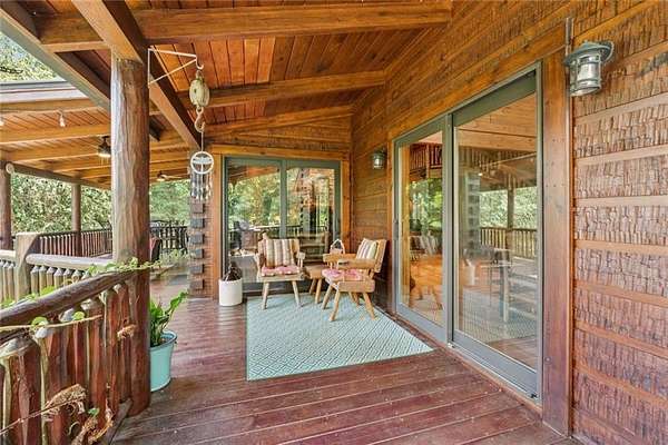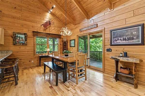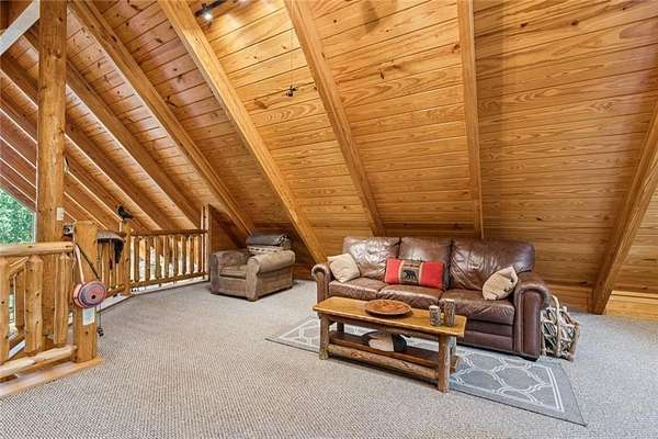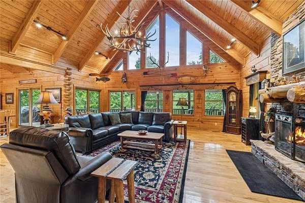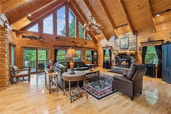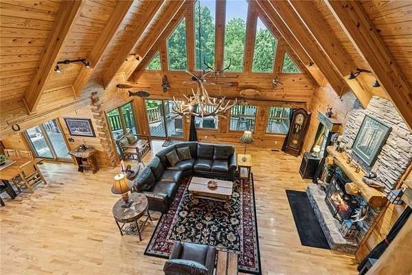 Escape the Ordinary--Live the North Georgia Dream Tucked away on 3 pristine acres just outside of Blue Ridge, this one-of-a-kind hand-hewn log cabin offers the perfect balance of rustic elegance and everyday comfort. Built in 2007 and proudly maintained by its original owner, this custom retreat invites you in with rich textures, a spacious open-concept layout, and quality craftsmanship throughout. The heart of the home is a striking great room anchored by a floor-to-ceiling wood-burning fireplace--perfect for cozy evenings and mountain memories. The enormous gourmet kitchen is a dream come true with granite countertops, a gas stove, and endless cabinetry and storage. Main-level living makes everyday life convenient, while large windows flood the interior with natural light and frame the wooded beauty outside. Thoughtful details like a wood-and-sheetrock interior, stamped concrete driveway, and metal roof add character and durability. Downstairs, the terrace level features a second fireplace with gas logs, and a generous bedroom with a full bath. Step right out onto the walk-out patio, a peaceful space to sip your morning coffee, soak up the sun, or breathe in the crisp mountain air. Whether you're watching deer wander through the yard or stargazing at night, this space was designed for unwinding. A 2-car garage offers ample storage, and the lush, well-manicured lawn gently rolls toward a quiet branch at the edge of the property. Short-term rentals are permitted, making this property a perfect choice for a full-time residence, vacation getaway, or income-producing rental. Conveniently located with easy access to Hwy 515, you're just minutes from Morganton Point Recreation Area with swimming, boating, kayaking, and picnicking--and a short drive to Mercier Orchards for award-winning hard cider, fresh pies, and wine tastings. Less than 2 hours to Atlanta's Hartsfield-Jackson Airport, yet a world away in peace and privacy. Call today for a private tour!