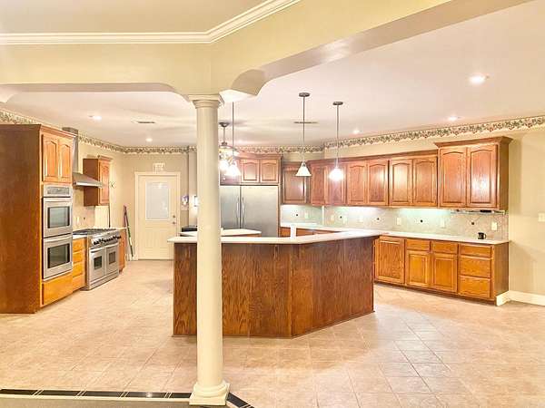 Beautiful Home situated on 2 acres. 2 Kitchens, In-Law Suite (they can have their own kitchen). Butler's Pantry w/ ample storage off Main Kitchen; 8 Burner Range; 4 Ovens in Main Kitchen; Freezer, Refrigerator, Ice Machine conveys; Huge Sunroom; Plumbing ready for pool; Primary Suite separate; Primary Bath w/ His & Her water closets (toilets). Formal Dining area; Half bath/ Hair Salon combo; Wet area in 4 car side load Garage; Home Security Cameras. Surround Sound in Den. A MUST SEE... Motivated Seller, bring offer. Please TEXT the Listing Agent to schedule showing.