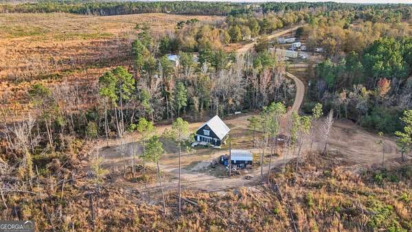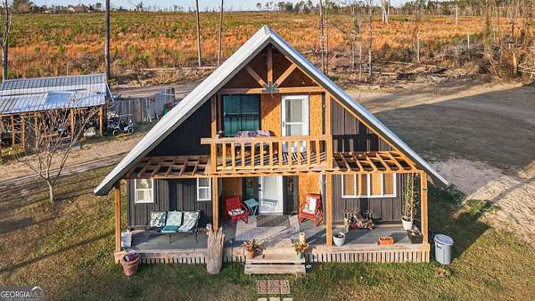 Set at the end of a quiet cul-de-sac in Vidalia's Hidden Hammock Subdivision, 334 Hidden Hammock Drive, Center / Toombs Central area, Toombs County, blends cabin-style character with 2021 construction on a wide 1.66 acre homesite designed for space, privacy, and easy living. The two-story 2BR/2BA plan delivers a true split layout-one bedroom and one full bath on the main level for day-to-day convenience, plus one bedroom and one full bath upstairs for privacy, guests, or a dedicated home office/retreat. A covered front porch frames the country setting, and the second-level bedroom opens to a balcony for fresh-air mornings and sunset views over the homesite. Inside, a vaulted great room anchors open living/dining/kitchen flow that's ideal for everyday life and hosting. The kitchen brings warm butcher-block countertops, open shelving, and an island/breakfast bar for prep and serving; wood-look laminate flooring offers easy-care durability in high-traffic areas. A striking modern stair with accent lighting connects the levels, while tall ceilings and generous windows invite natural light throughout the day. Exterior details complement the setting, including a metal roof and low-maintenance finishes that suit the wooded-edge neighborhood aesthetic. The cleared acreage provides a private driveway, open yard, and accessory outbuildings for storage/hobbies-bring your garden plan, pets, and outdoor gear (any shop/workshop or livestock use is subject to buyer verification of local rules and permits). Utilities per records: shared well and septic (buyer to confirm during due diligence). For clarity on size, public/MLS record reflects approximately 954 sq ft, and the seller reports approximately 1,470 sq ft-buyer to verify during due diligence. Location puts you close to Vidalia conveniences-including shopping, dining, healthcare, and regional corridors such as US-1-yet the home's tucked-back cul-de-sac position preserves a peaceful feel away from through traffic. Price and terms negotiable; seller will review all reasonable offers. Submit your best offer. Full Matterport 3D tour available in the Virtual Tour link for an immersive walk-through. To book a showing, please use ShowingTime or contact the listing agent directly for availability and access instructions. Listed by Weichert, Realtors - Webb & Associates. Each Weichert franchised office is independently owned and operated. Equal Housing Opportunity. Information deemed reliable but not guaranteed; buyer to verify all matters of importance, including utilities, schools, acreage, improvements/materials, square footage, and any intended uses of outbuildings/lands.