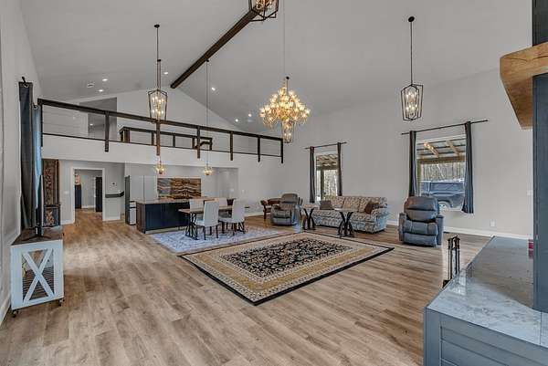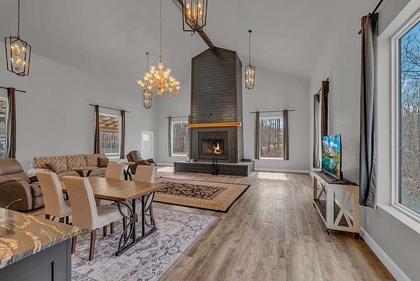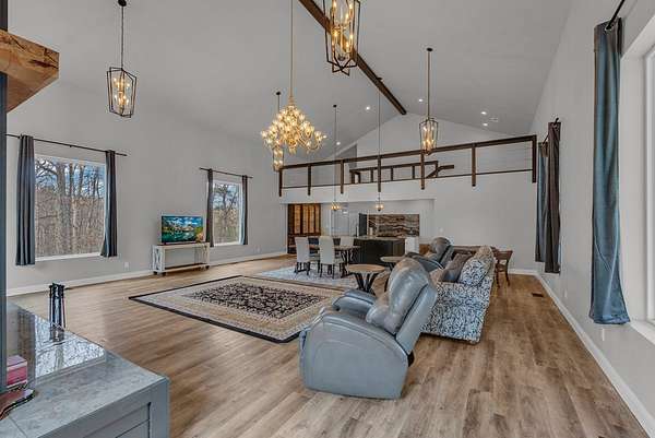 Peaceful Tennessee retreat situated on 28.9 private acres featuring a flowing creek, natural land bridge, and beautiful hardwood forest. This unique property offers two homes, providing flexibility for guests, multi-generational living, or potential rental opportunities. The new building approximately 2,631 sq ft with an open living and kitchen layout, 2 bedrooms, 1.5 baths, loft, mudroom, and attached 2-car garage, along with covered porch and deck space to enjoy the scenic surroundings. The original cabin-style home features a spacious primary suite, open living and dining area, well-equipped kitchen with farmhouse sink, gas stove, granite countertops, solid wood cabinetry, and built-in pantries. A large screened porch is perfect for relaxing and taking in the mountain breeze. Features include two fireplaces, fiber internet, ductless HVAC, and partial basement. A rare opportunity to own a private slice of Tennessee paradise.