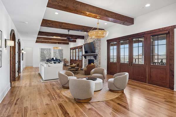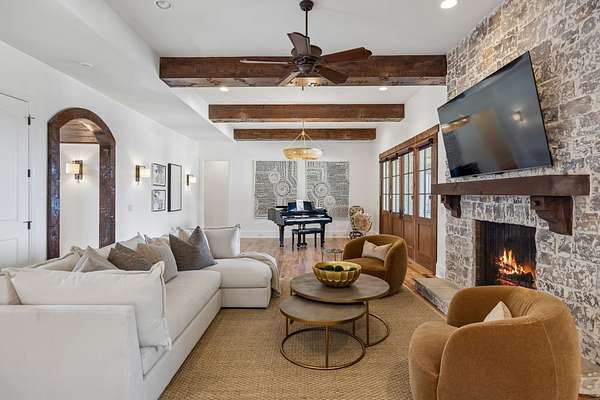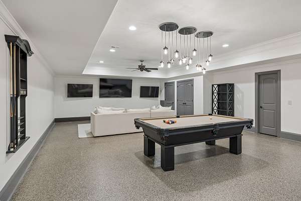 Additional highlights: 2nd floor theater, bunk room, & private study via staircase or elevator. A separate au pair/in law suite adds flexibility. All 6 bedrooms have ensuite baths. The lower level includes a possible 7th bedroom/hobby room, full bath, kitchen w/ bar, game room, gym, storm room, & pool house/lounge. Flexible space for a showcase garage or tour bus.