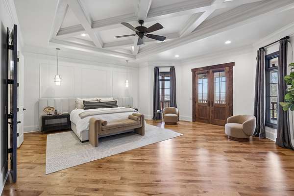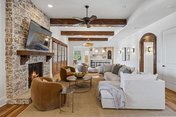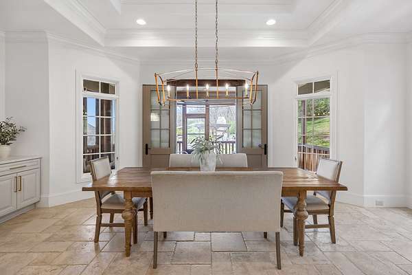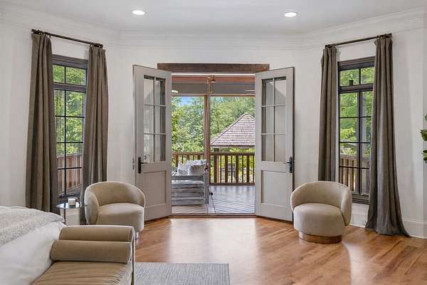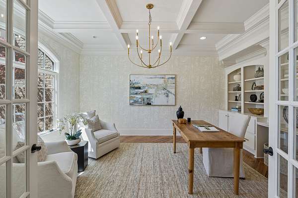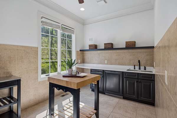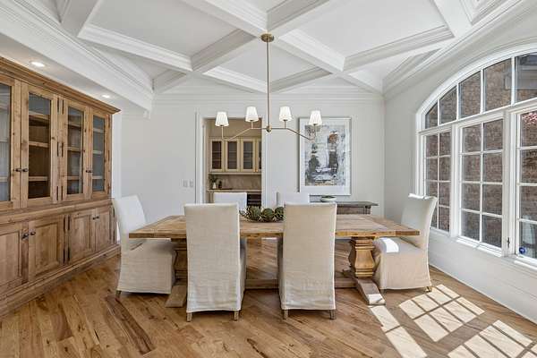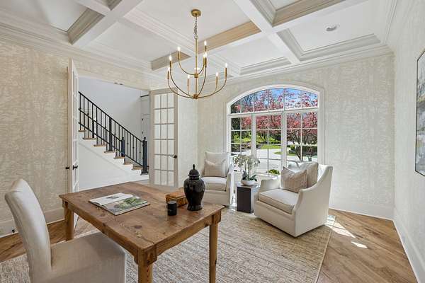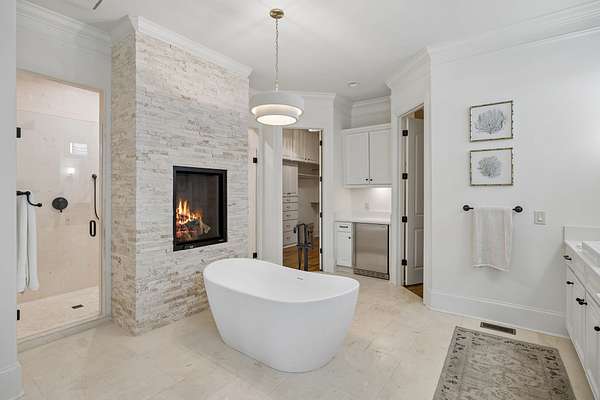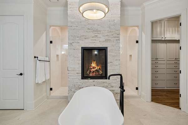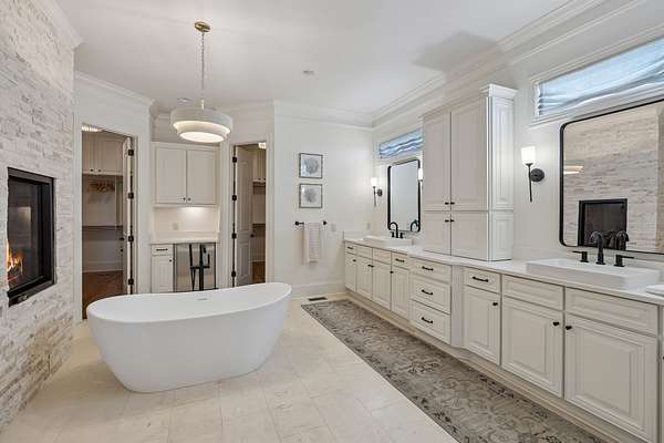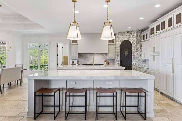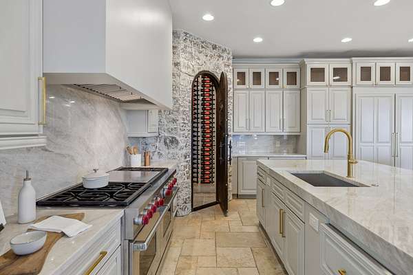 The renovated chef’s kitchen features dual Taj Mahal islands, walk in pantry, wine cellar, & catering kitchen. The main level primary suite offers dual walk in closets & a spa bath w/ oversized shower.