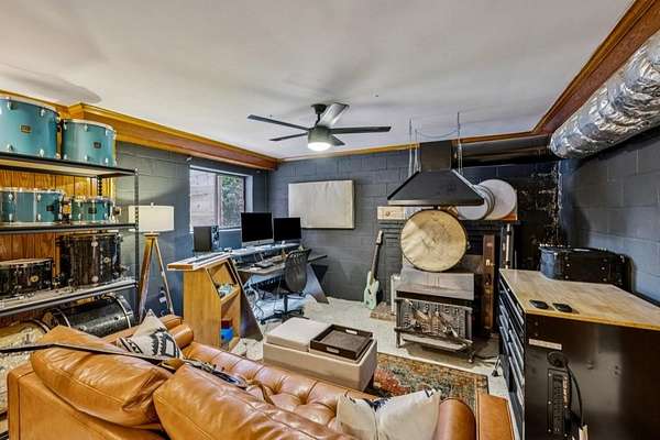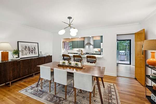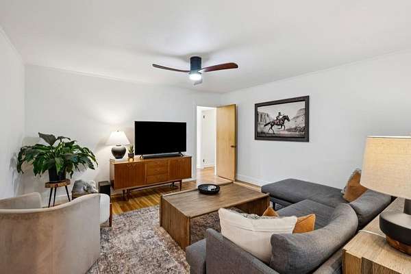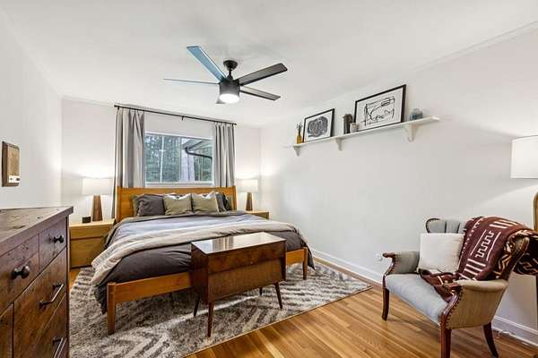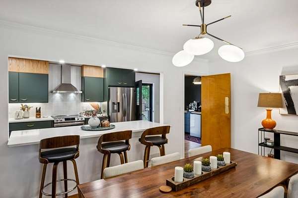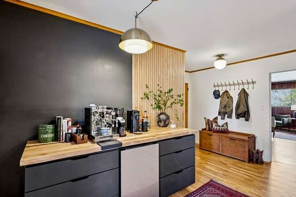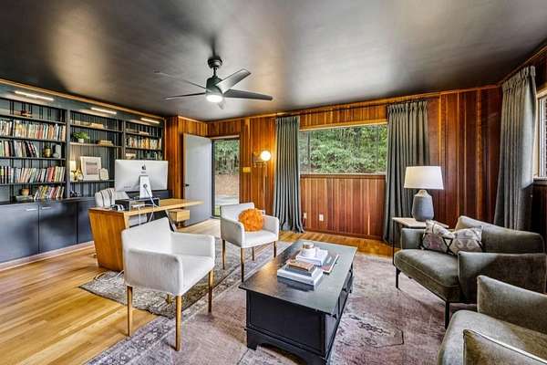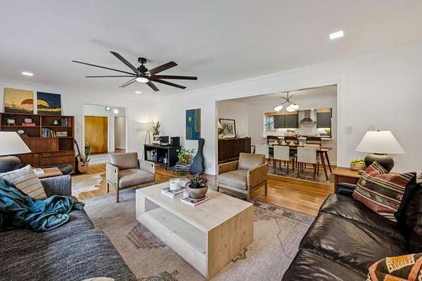 A One-of-a-Kind Mid-Century Modern Sanctuary tucked away on 3 Private, Park-Like Acres, just minutes from the heart of Historic Downtown Senoia. This Architecturally Striking Brick Ranch has been Designer Renovated from Top to Bottom, blending timeless mid-century character with curated modern updates creating a home that feels both elevated and effortlessly livable. From the moment you arrive, the Expansive Flat Front Lawn and serene wooded backdrop set the tone for something truly special. Inside, Golden Hardwood Floors, Clean White Walls, and an Open, Light-Filled Foyer flow seamlessly into the main living spaces, where thoughtful design and natural light take center stage. The Main Living Room offers an inviting space to gather, while the adjacent Dedicated Dining Area anchors the home for entertaining and everyday living. At the heart of the home, the Chef's Kitchen is both bold and functional, featuring Custom Green Cabinetry, Quartz Countertops, High-End Stainless Steel Appliances, a White Tiled Backsplash, and a Breakfast Bar perfect for casual meals and morning coffee. A stylish Coffee & Prep Station and abundant storage elevate the space, while the nearby Oversized Laundry Room impresses with Custom Tile Flooring, a Utility Sink, and generous cabinetry. A Wood-Paneled Home Office with Custom Built-Ins offers a warm, sophisticated space for work or creative pursuits. Nearby, a cozy Fireside Living Room opens through Sliding Glass Doors to the outdoor patio creating an effortless indoor-outdoor connection and a peaceful place to unwind surrounded by nature. The Primary Suite on Main is a true retreat, featuring a Spa-Inspired Bathroom with a Soaking Tub, Designer Tile, Dual Vanity, Large Glass Shower, and Two Closets. Additional Spacious Bedrooms, including a Private Ensuite with Dual Vanity, provide comfort and flexibility for family and guests. Downstairs, the Fully Finished Basement with Private Exterior Access unlocks exceptional versatility. This level includes a Second Full Kitchen with Dark Cabinetry, Butcher Block Countertops, and modern appliances, along with Multiple Living Areas, Bedroom Space, Full Bathroom, Home Office, and Fitness or Studio Space ideal for Multi-Generational Living, Guest Quarters, or Income Potential. Outside, the grounds are nothing short of magical. Multiple Outdoor Sitting Areas, open grassy spaces, and wooded privacy create a true Retreat-Like Setting perfect for entertaining, relaxing, or simply enjoying the quiet beauty of the land. All of this, Just Under a Mile from Downtown Senoia, with easy access to beloved Shops, Dining, Events, and Film-Famous Streets offering the rare combination of Privacy, Design, Land, and Location. This is not just a home it's an experience, a lifestyle, and one of the most exceptional properties Senoia has to offer.