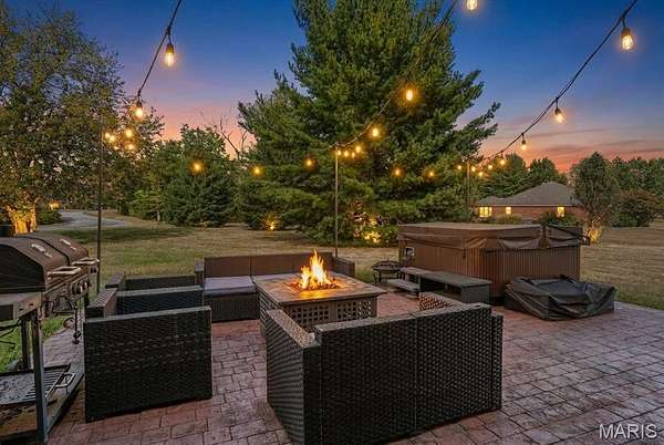 Enjoy outdoor living on the expansive back patio, complete with hot tub and fire pit, or pursue hobbies in the 30x40 detached garage. Located near parks, trails, and excellent schools, and just 25 minutes from St. Louis, this home offers both suburban serenity and urban convenience.